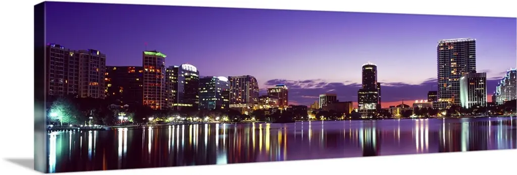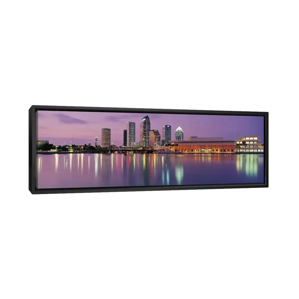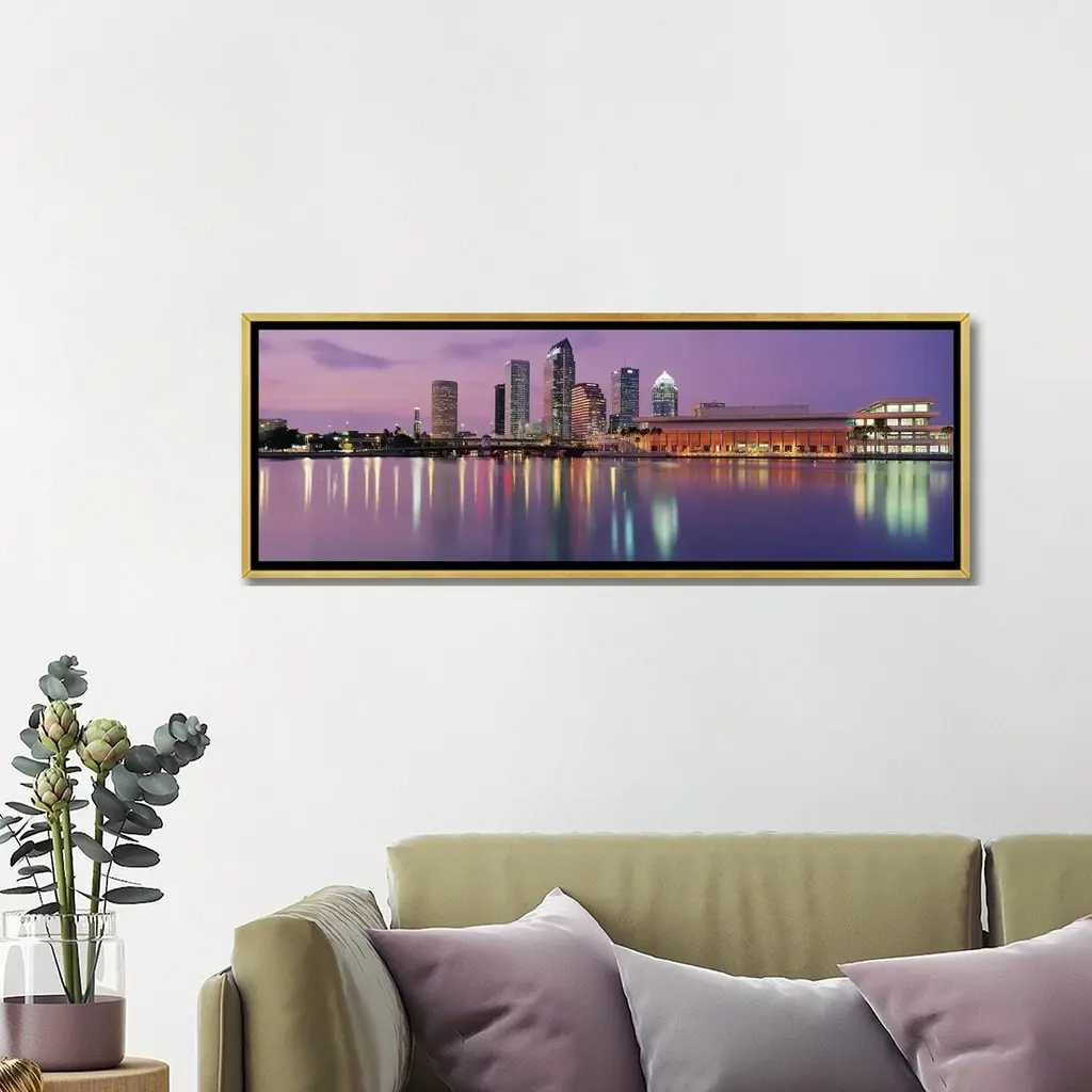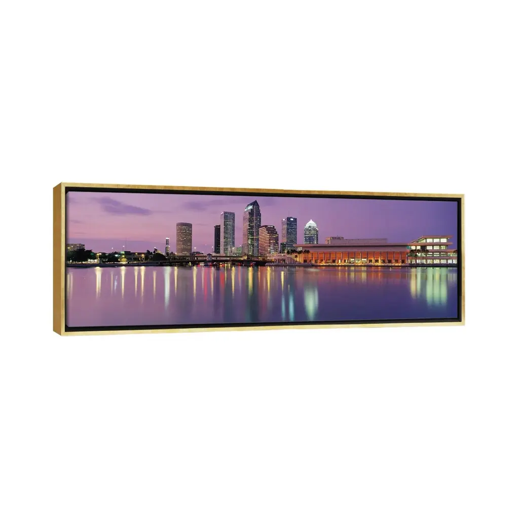 Icanvas "Tampa Panoramic Skyline Cityscape (Dusk)" By Unknown Artist Framed Canvas Print - 16x48 - Gold