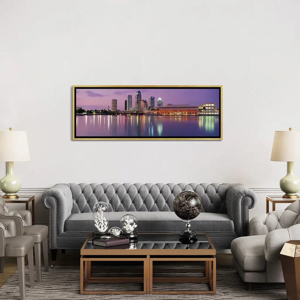 Icanvas "Tampa Panoramic Skyline Cityscape (Dusk)" By Unknown Artist Framed Canvas Print - 20x60 - Gold