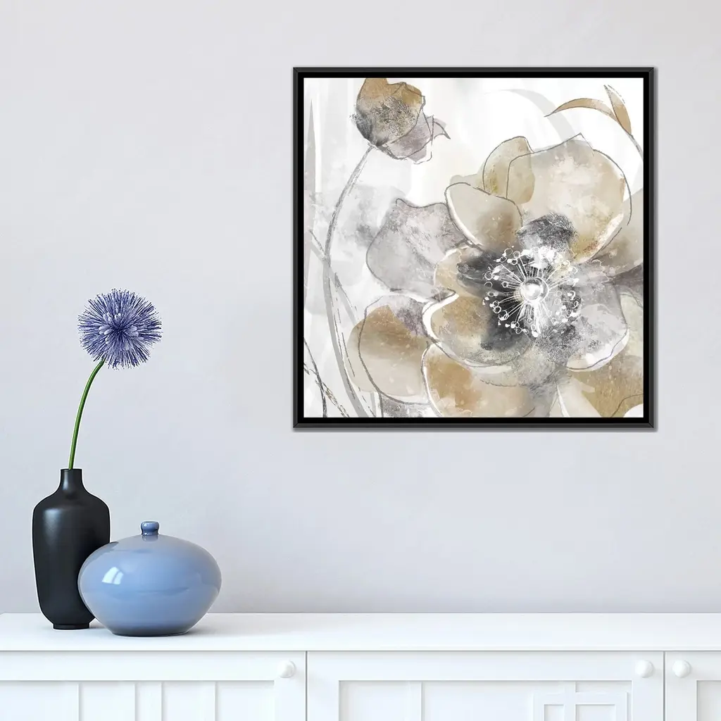 Icanvas "Taupe Spring Poppy I" By Maria Donovan Framed Canvas Print - Black - 26x26