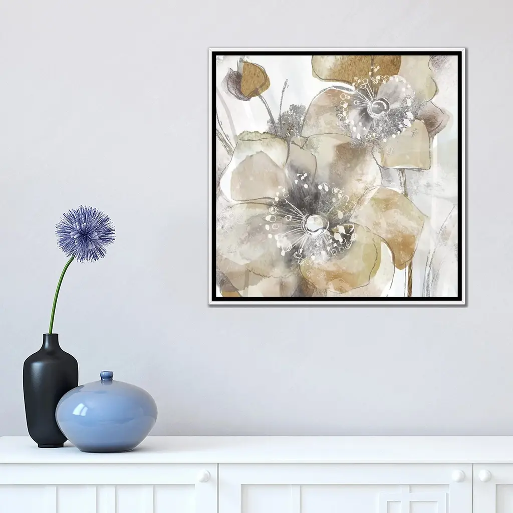 Icanvas "Taupe Spring Poppy Ii" By Maria Donovan Framed Canvas Print - Black - 12x12