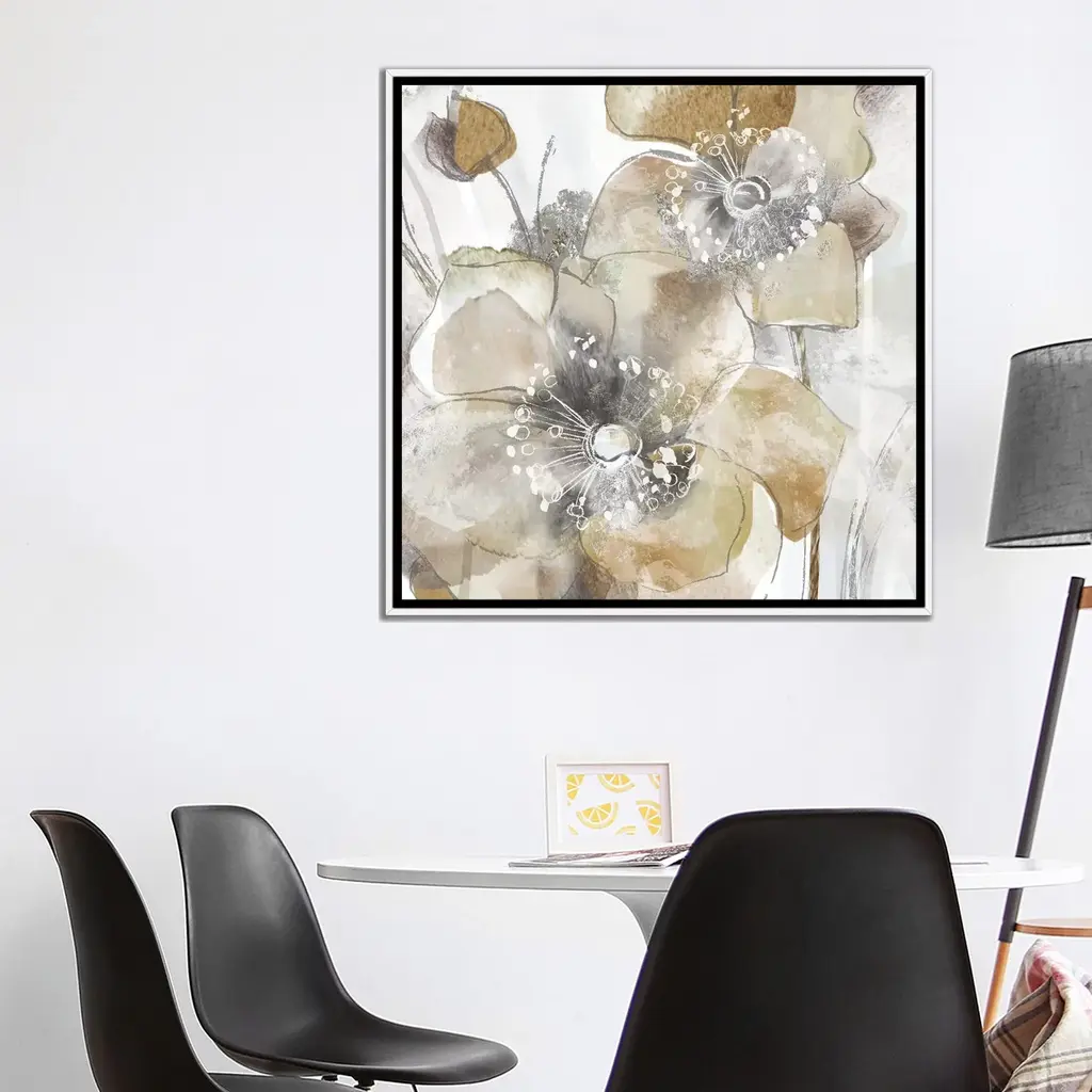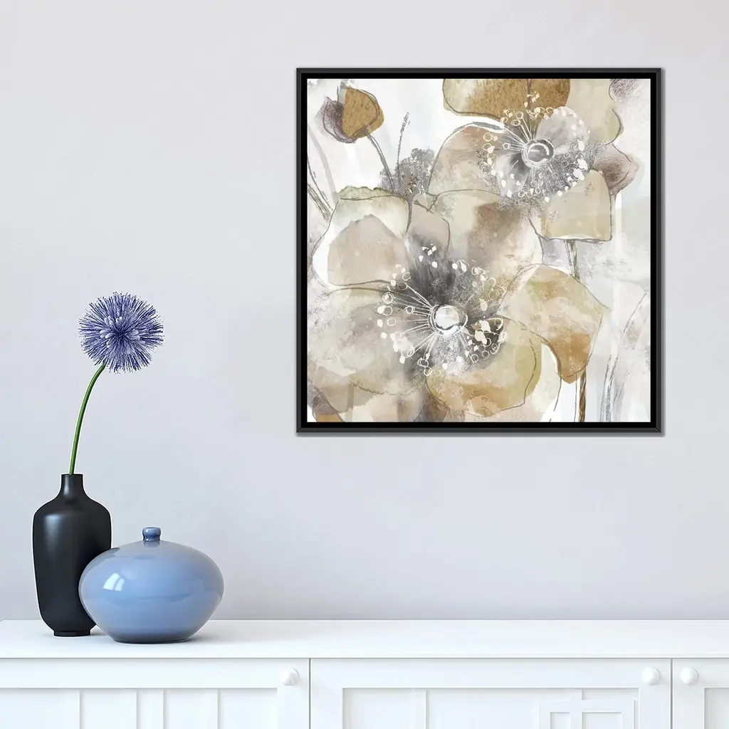 Icanvas "Taupe Spring Poppy Ii" By Maria Donovan Framed Canvas Print - Gold - 12x12
