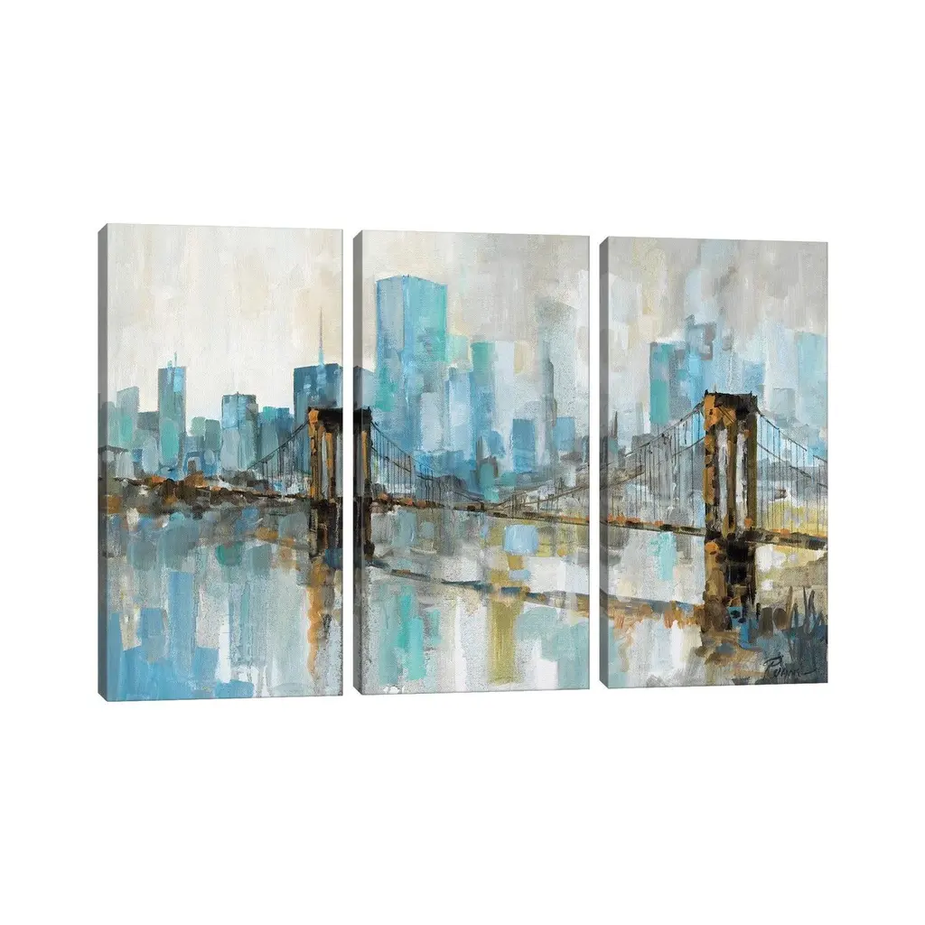 Icanvas "Teal City Shadows" By Ruane Manning 3-Piece Canvas Wall Art Set - 40x60x1.5