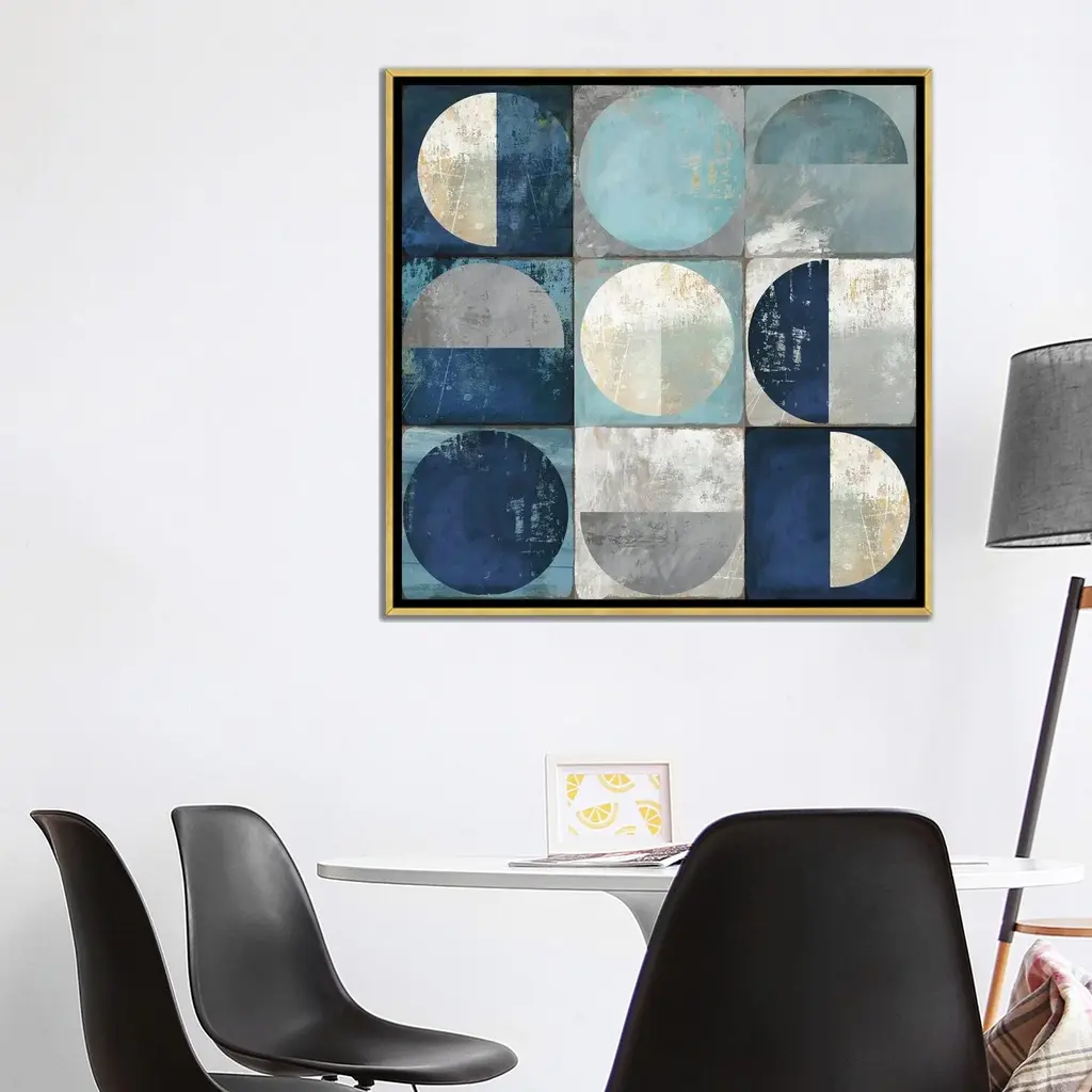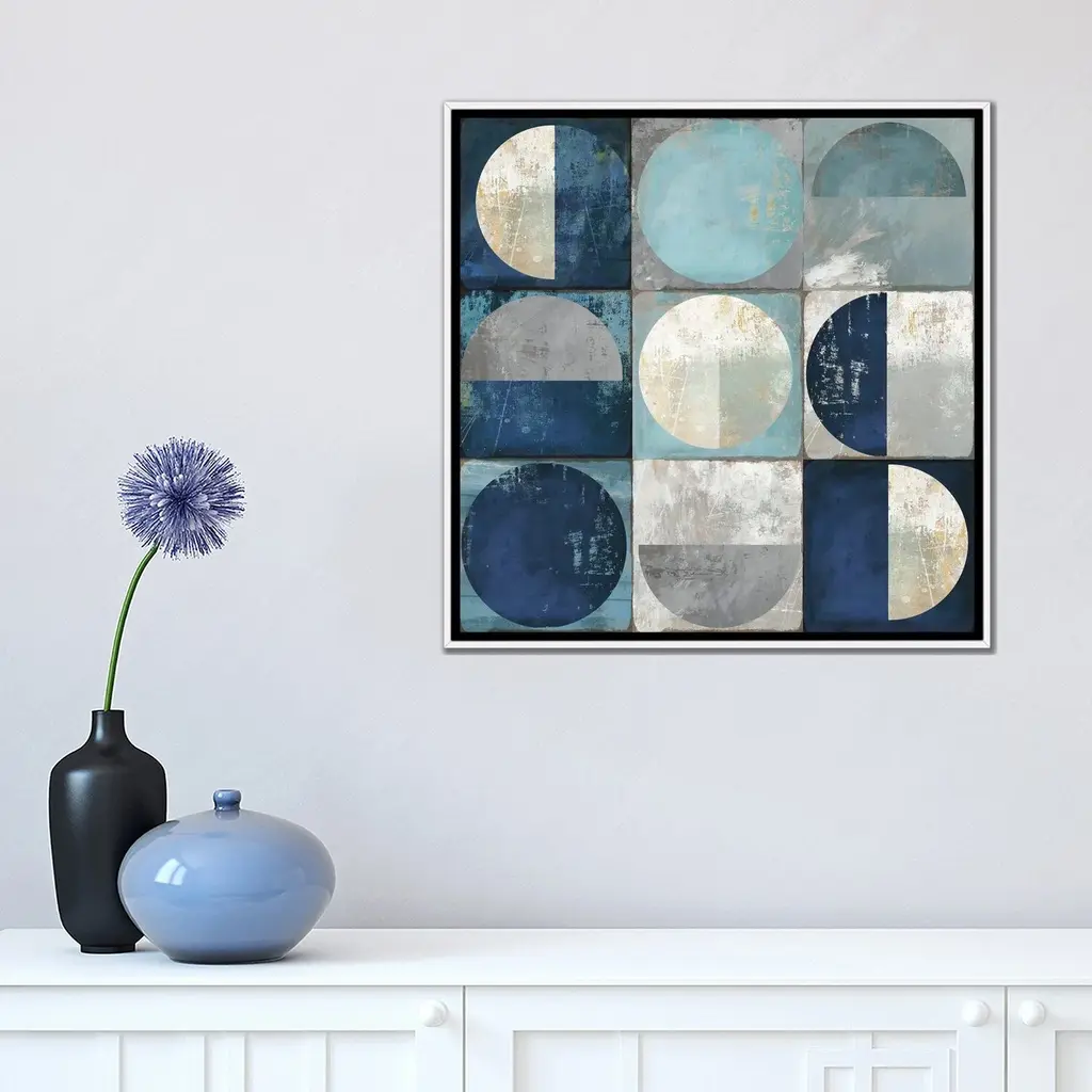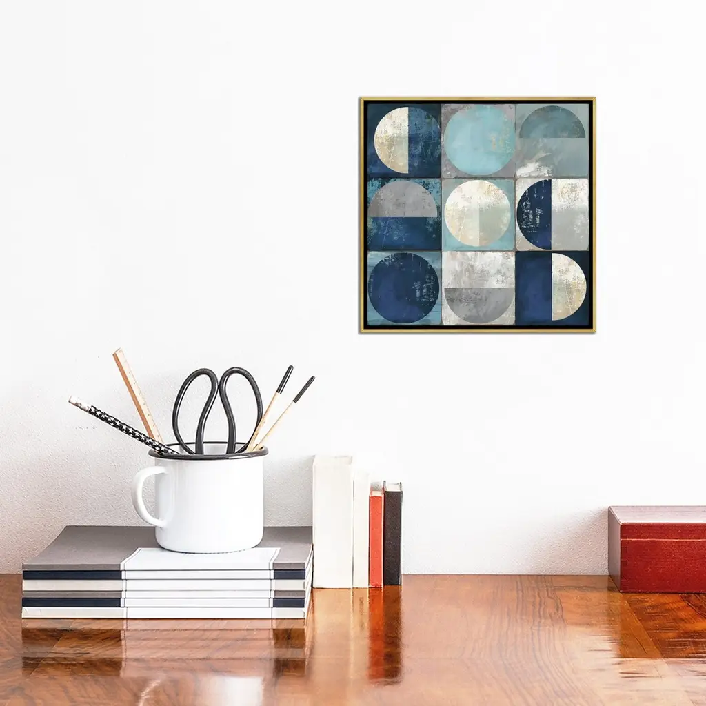 Icanvas "Teal Crescent" By Tom Reeves Framed Canvas Print - Black - 12x12