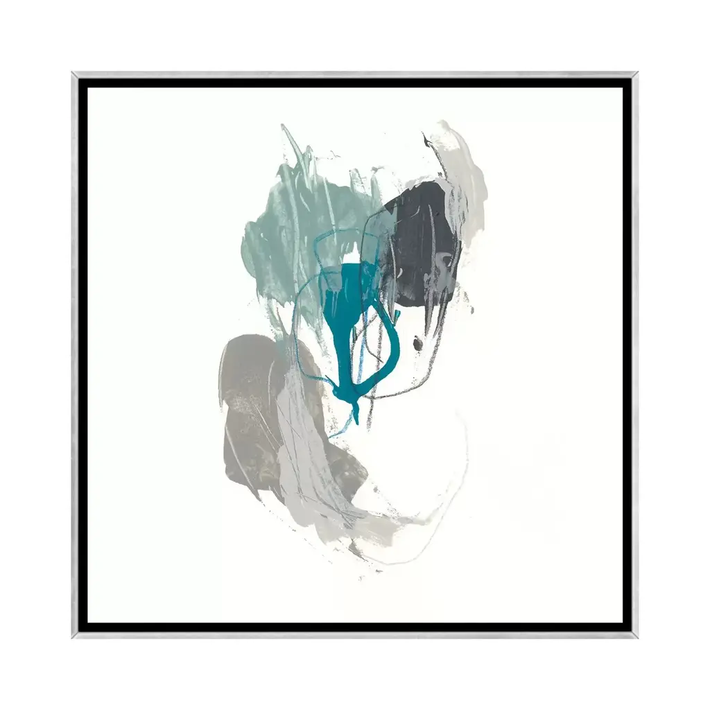 Icanvas "Teal Gesture Iii" By June Erica Vess Framed - Charcoal - 18x18