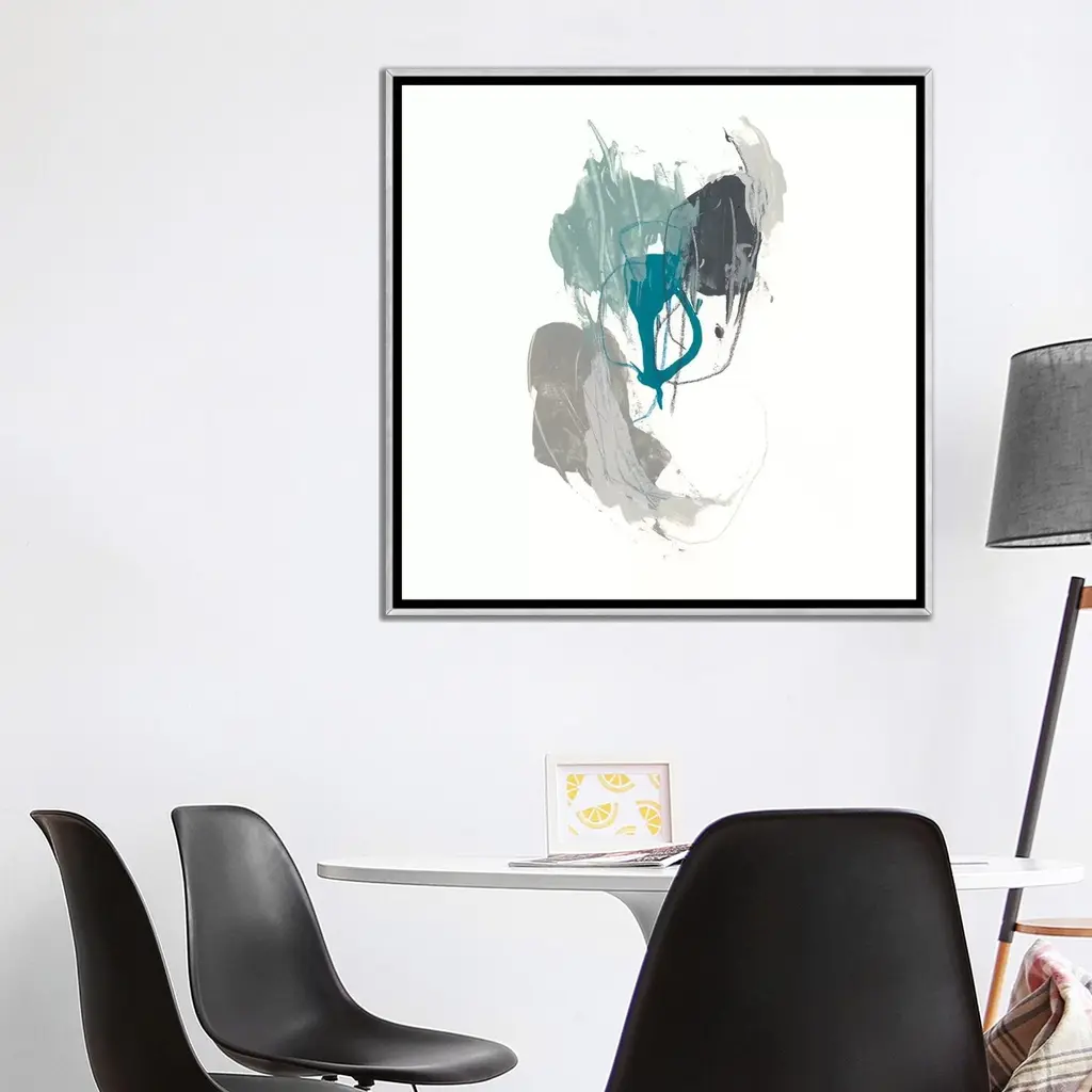 Elevate your space with the iCanvas "Teal Gesture III" by June Erica Vess Framed artwork. Crafted with the highest quality materials, this Giclee canvas piece offers the texture, look, and feel of a fine-art painting. Hand-stretched and stapled over pine-wood bars in Gallery Wrap style, this artwork is professionally crafted in the USA. Mounted to a 2 inch thick, elegant hardwood frame, the art appears to float within the frame, creating a visually stunning effect. With fade-resistant archival inks, the vibrant colors of this contemporary piece will remain bold for decades to come. Add a touch of brilliance and exceptional detail to your space with this uncompromising style.Features: