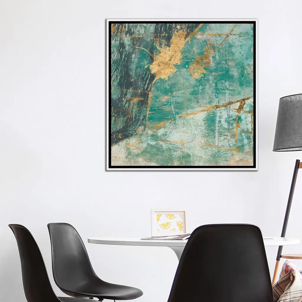 Icanvas "Teal Lace I" By Jennifer Goldberger Framed Canvas Print - Gold - 37x37