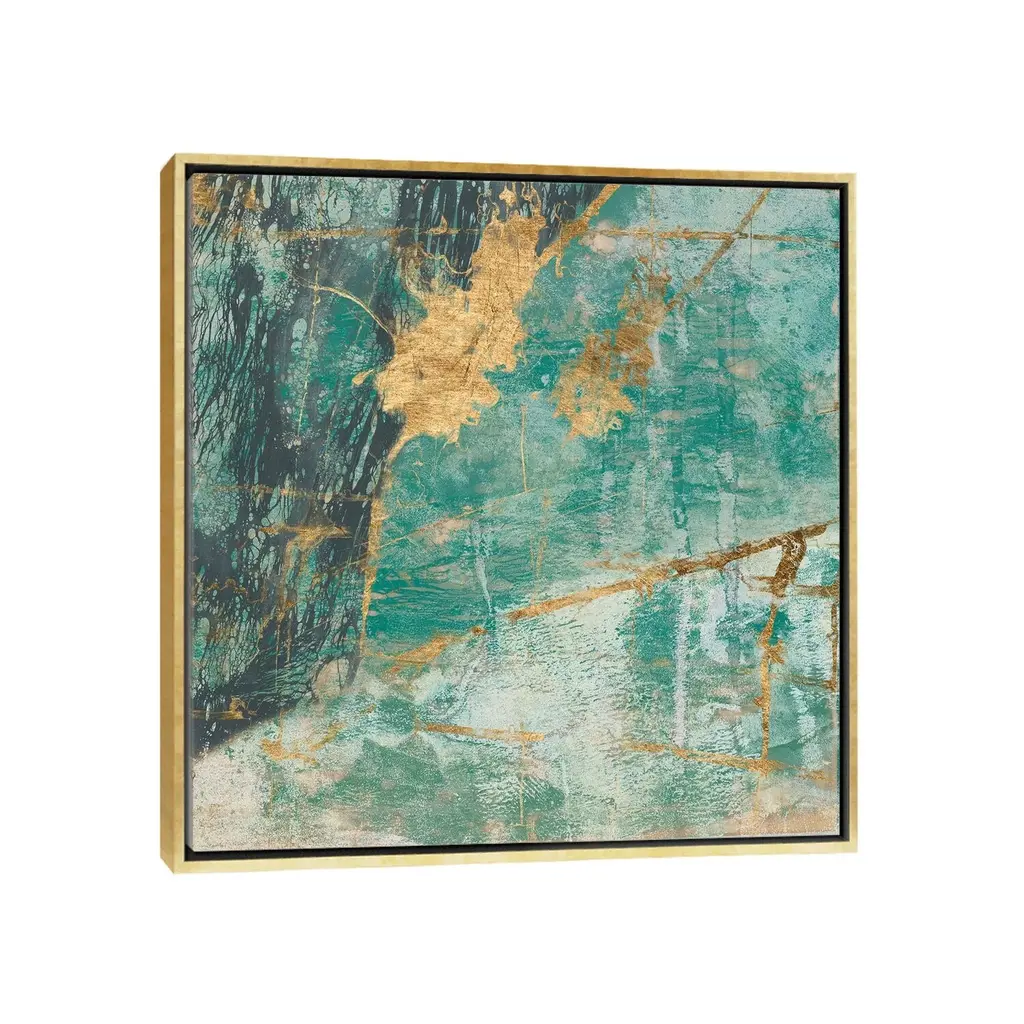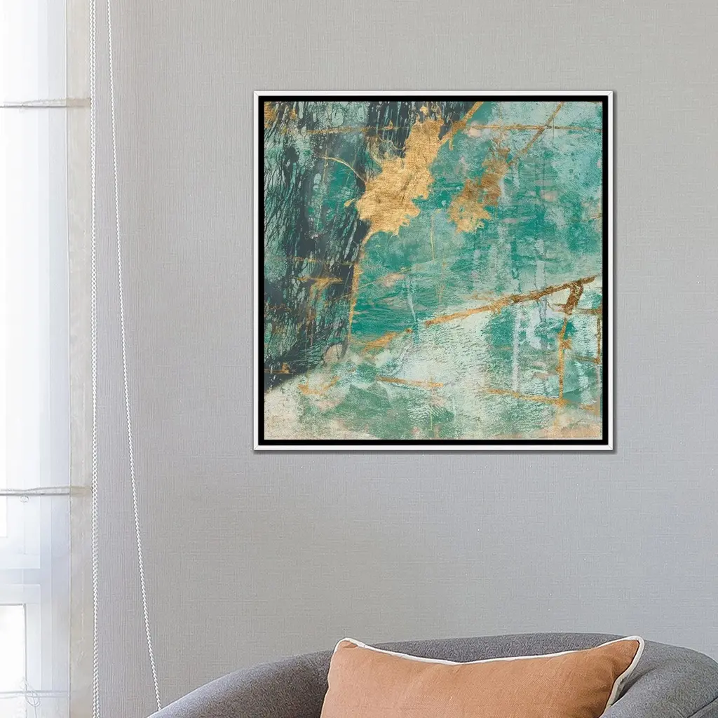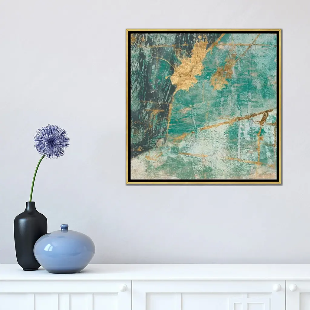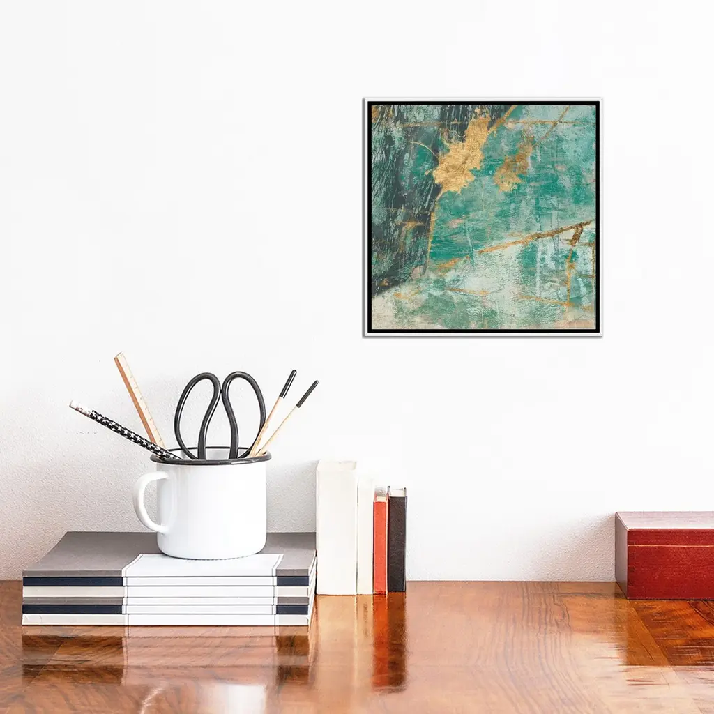 Icanvas "Teal Lace I" By Jennifer Goldberger Framed Canvas Print - White - 12x12