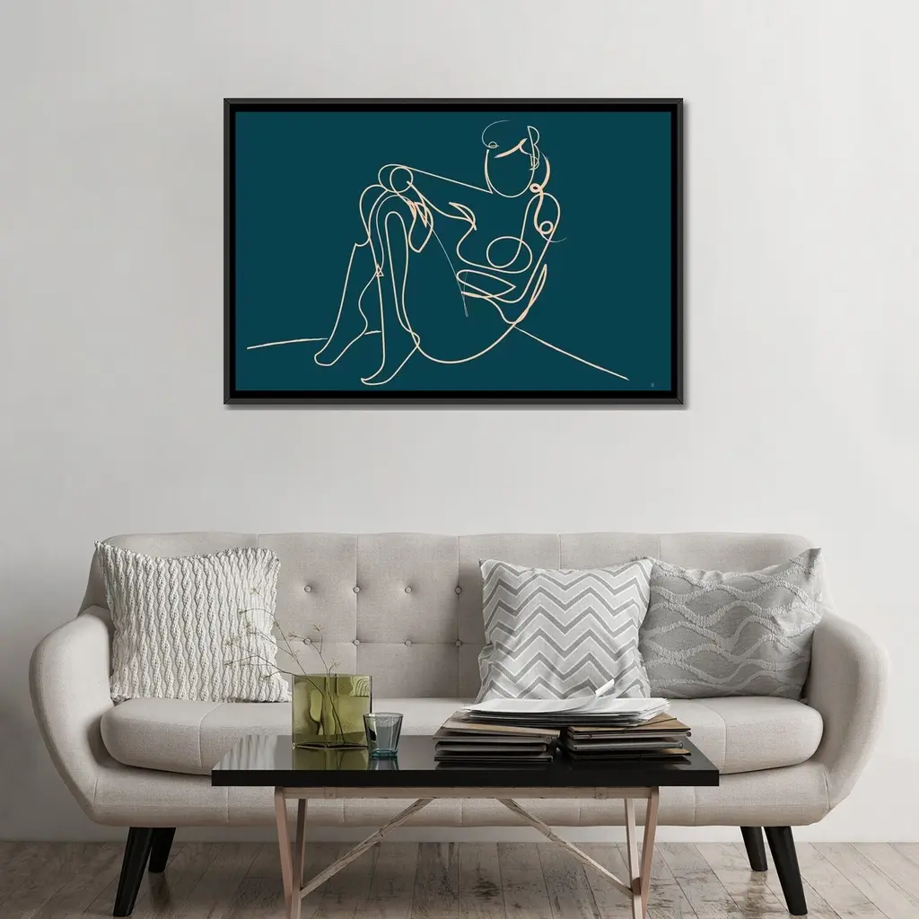 Icanvas "Teal Nude" By Dan Hobday Framed Canvas Print - Black - 18x26