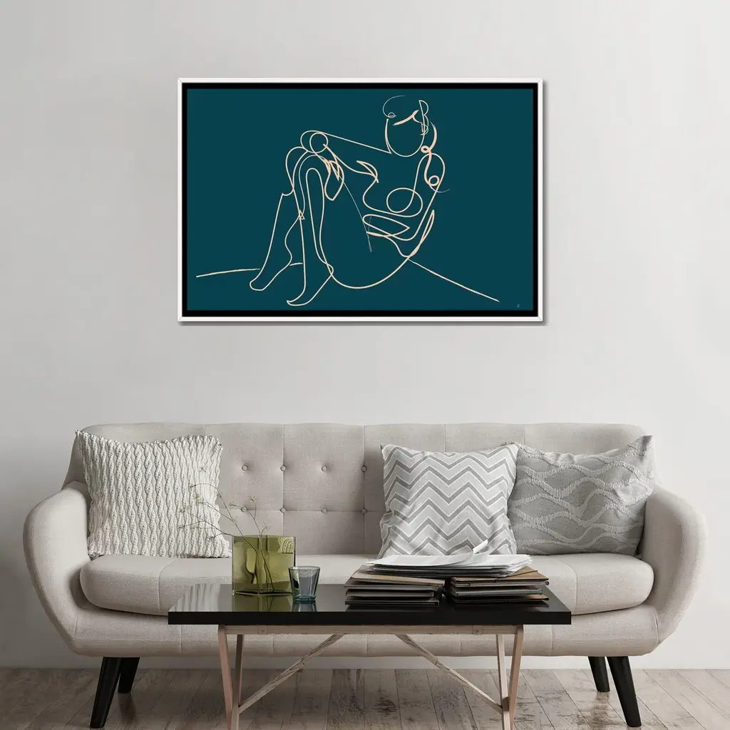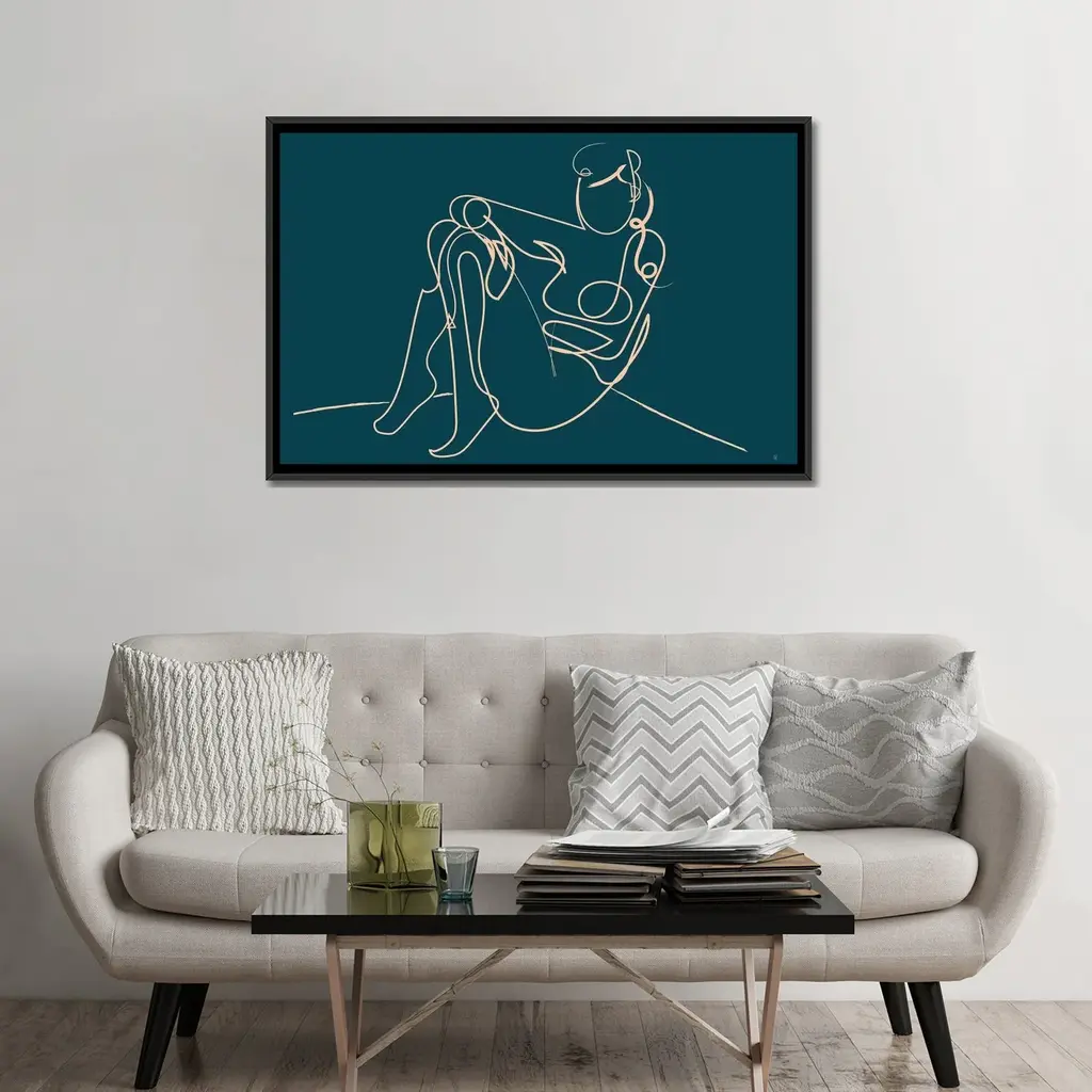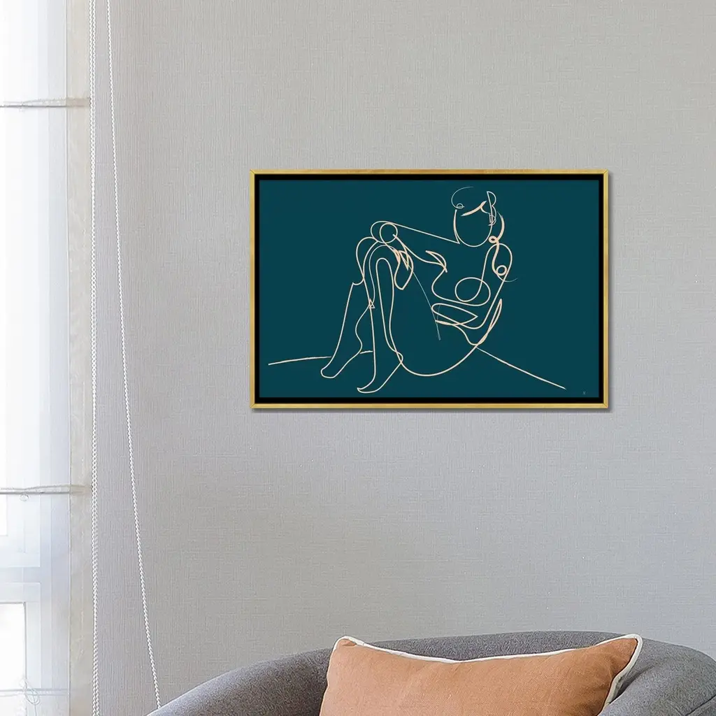 Icanvas "Teal Nude" By Dan Hobday Framed Canvas Print - Gold - 26x40