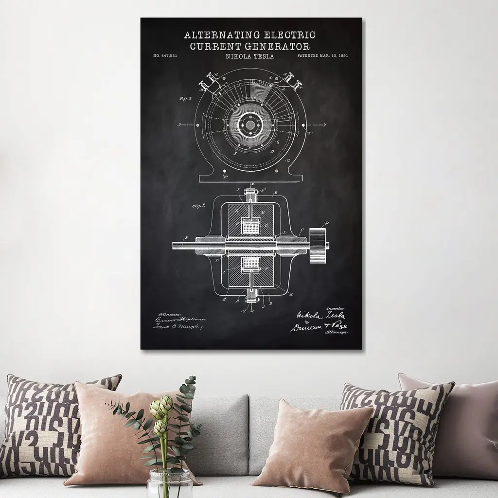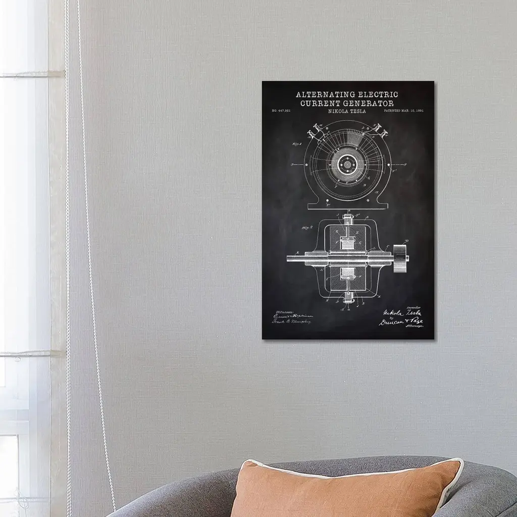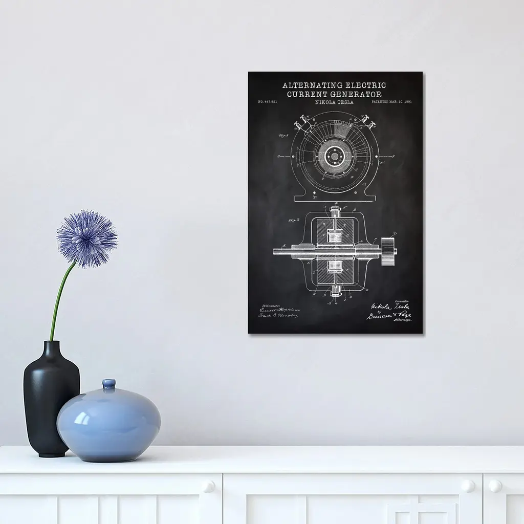 Icanvas "Tesla Alternating Electric Current Generator, Black" By Patentprintstore Canvas Print - 26x18x1.5