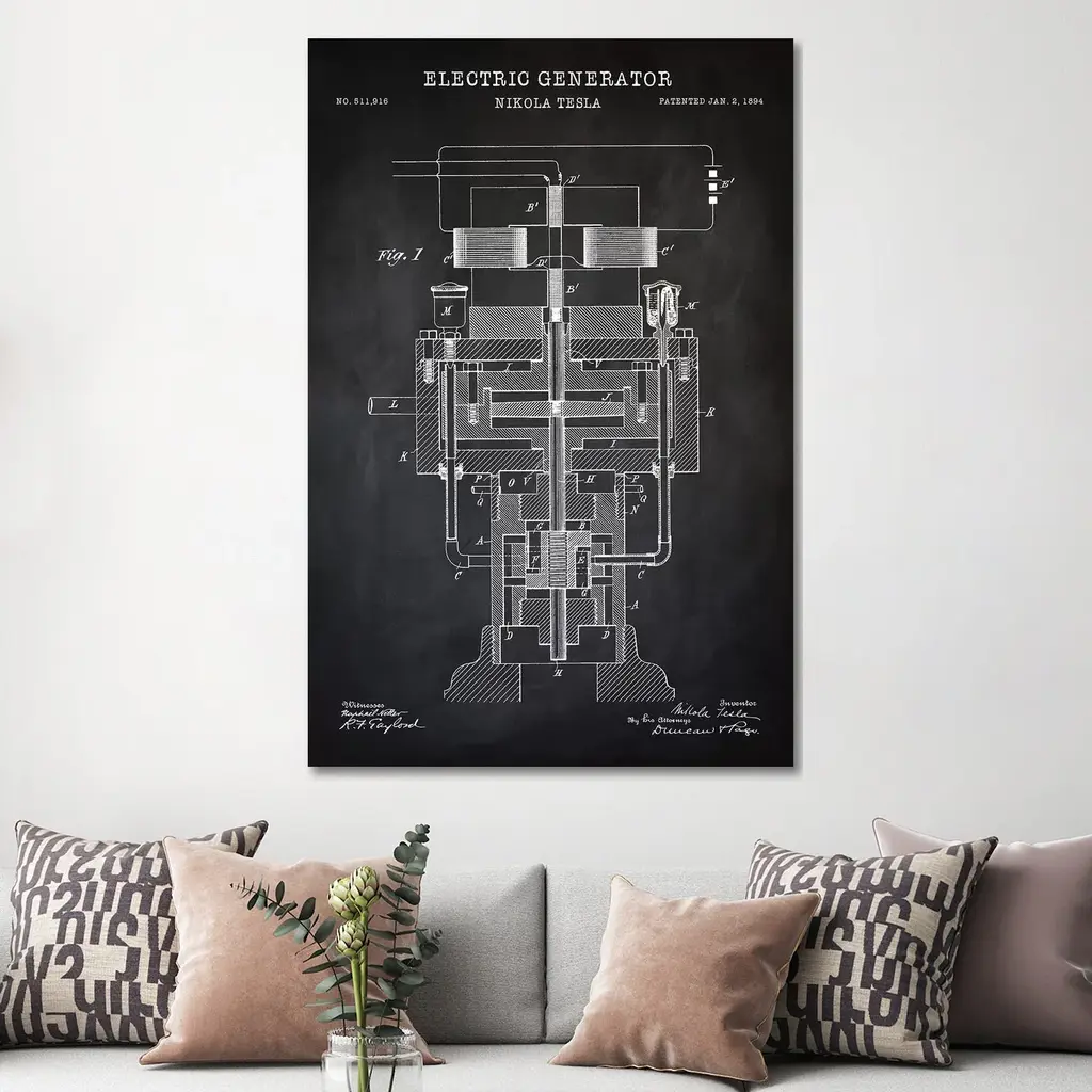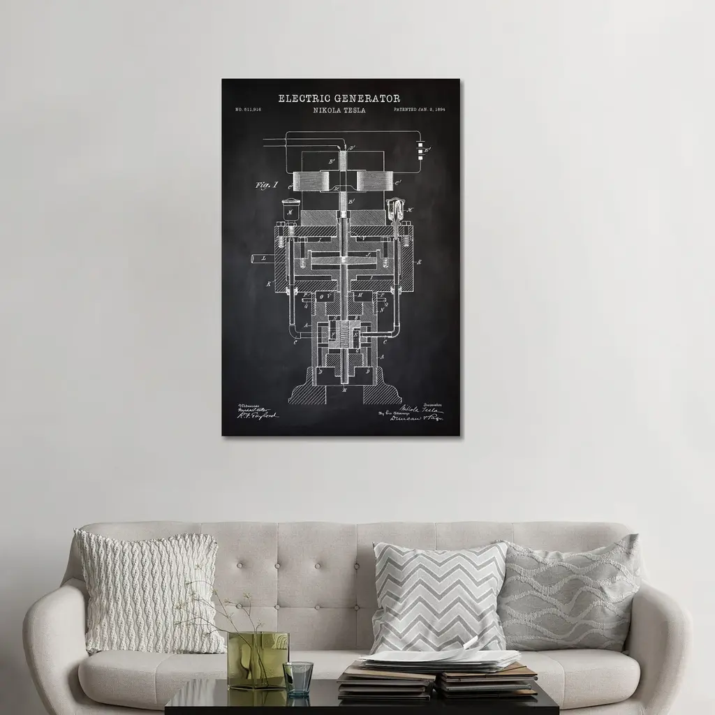 Icanvas "Tesla Electric Generator, Black" By Patentprintstore Canvas Print - 26x18x1.5