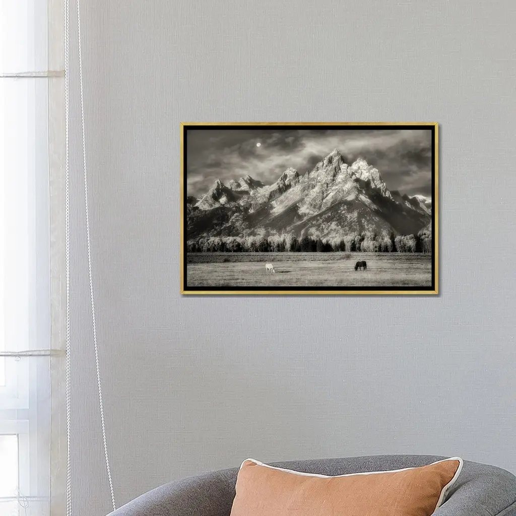 Icanvas "Teton Horses In Pasture" By Dennis Frates Framed - White - 26x40