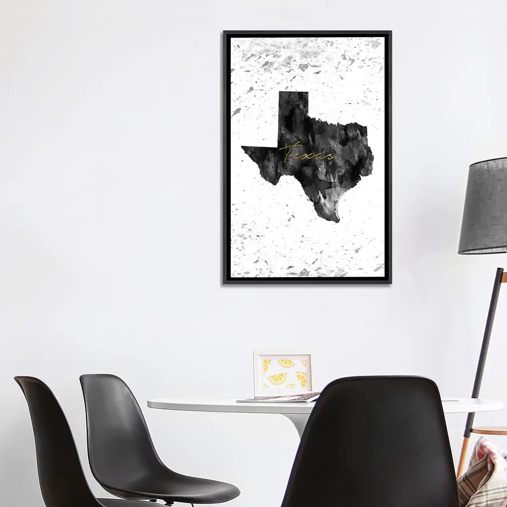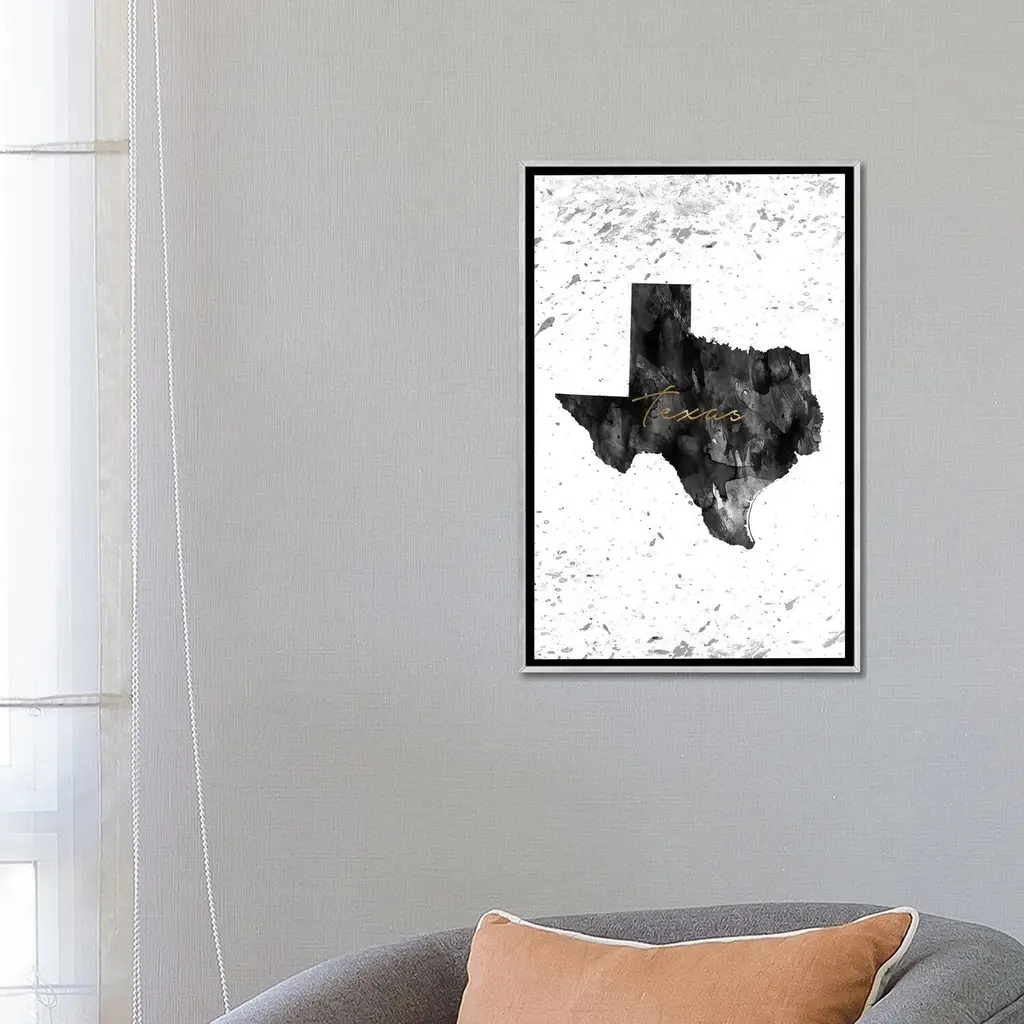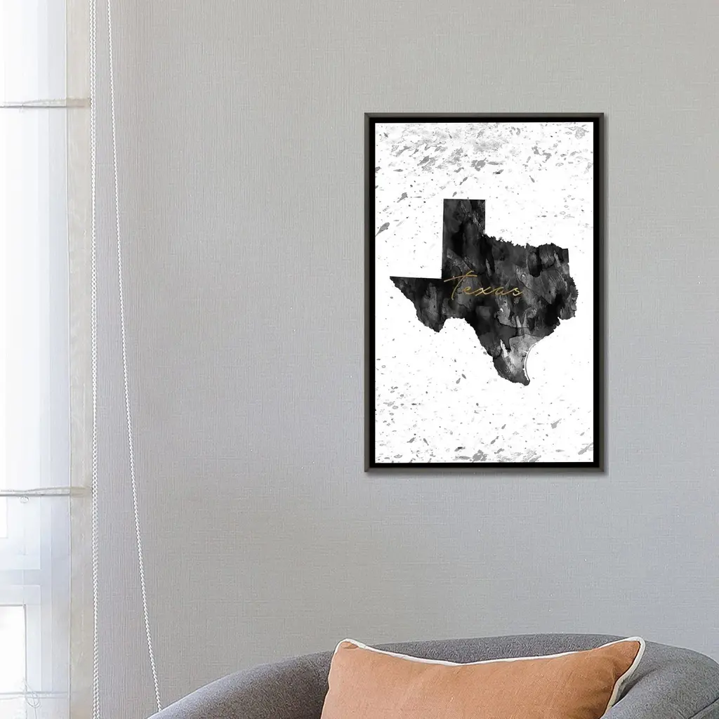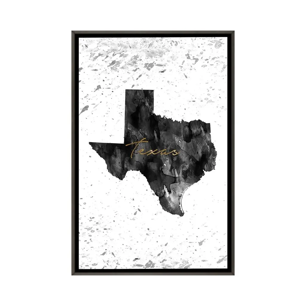 Icanvas "Texas Black And White Gold" By Walldecoraddict Framed - Charcoal - 40x26
