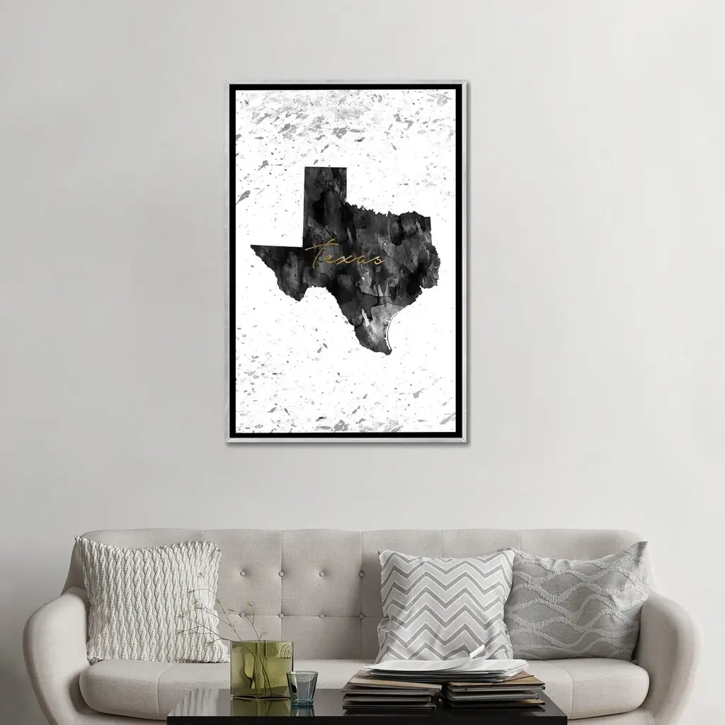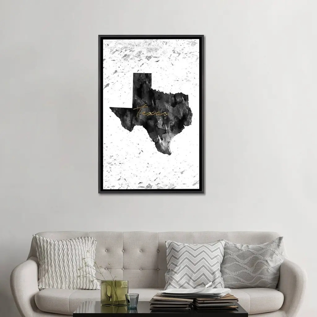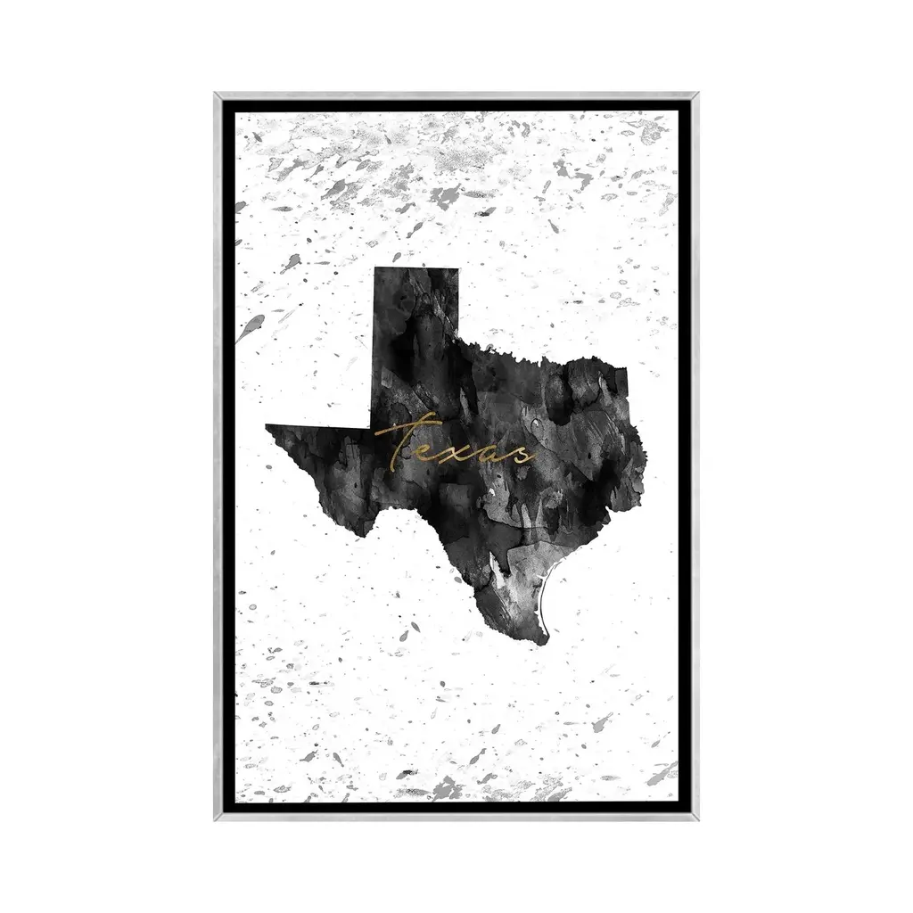 Icanvas "Texas Black And White Gold" By Walldecoraddict Framed - Charcoal - 48x32