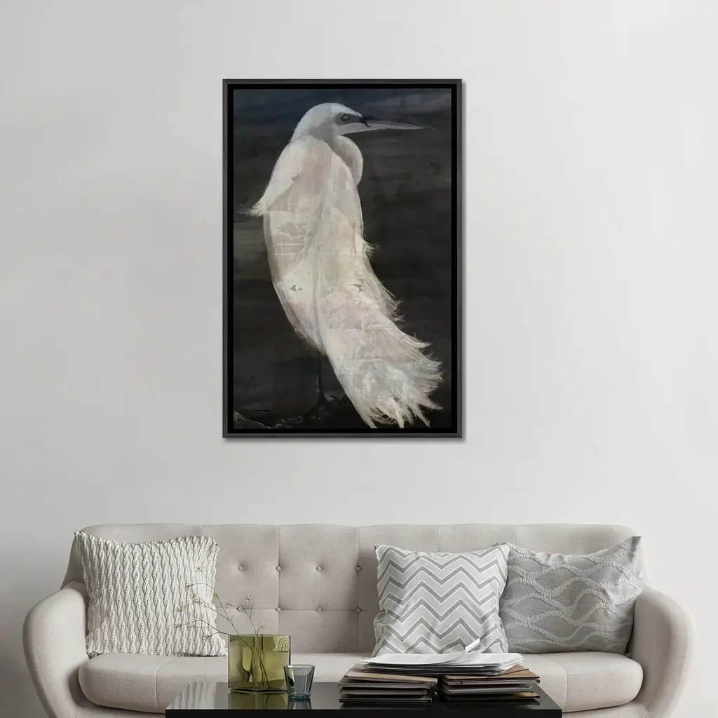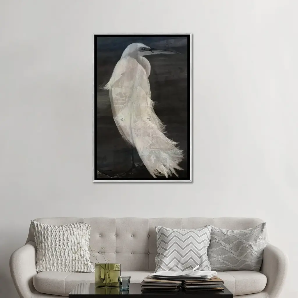 Icanvas "Textured Egret Ii" By Stellar Design Studio Framed - Ebony - 26x18