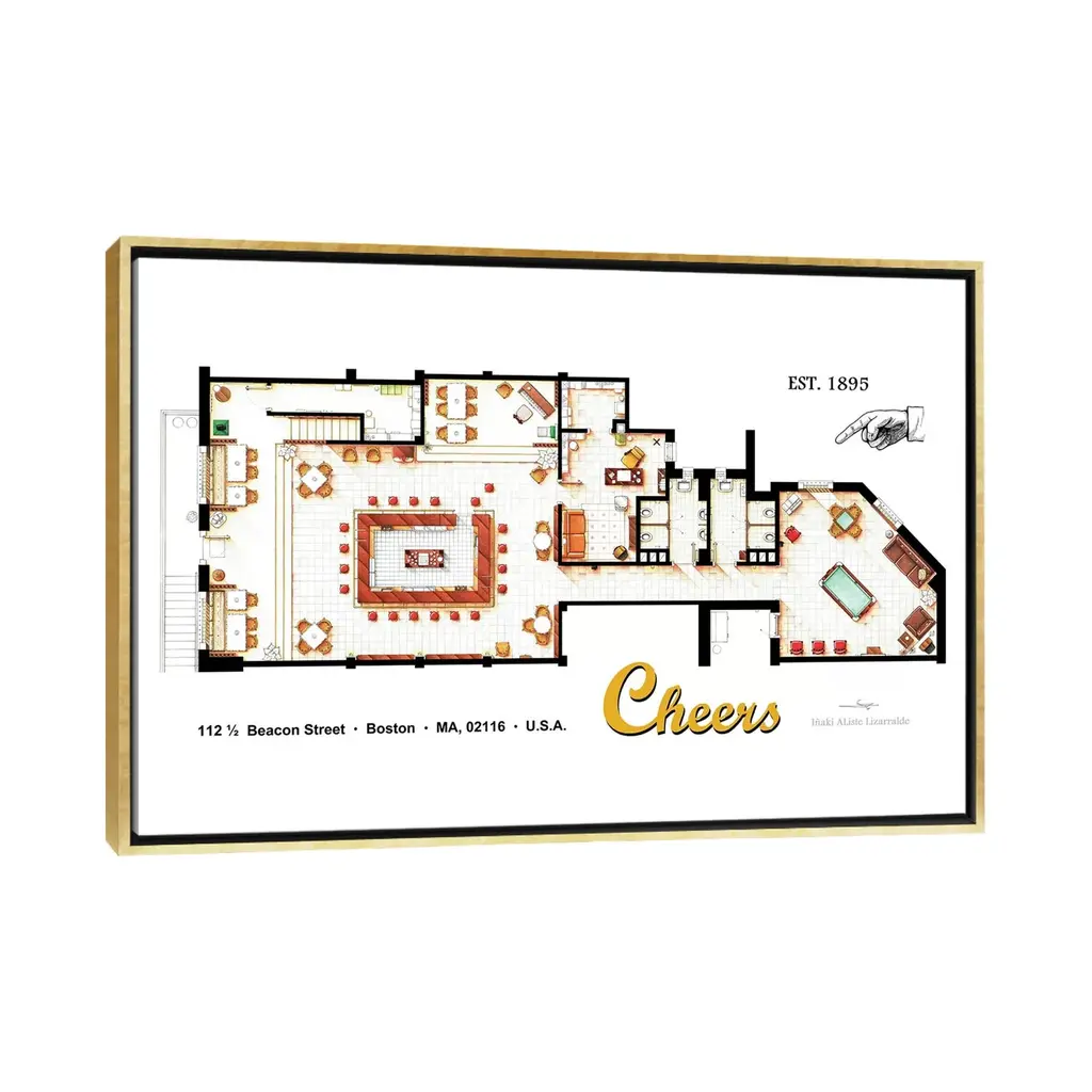 Icanvas "The Bar From Cheers" By Tv Floorplans & More Framed Canvas Print - White - 32x48