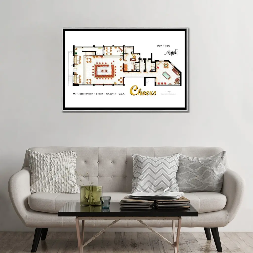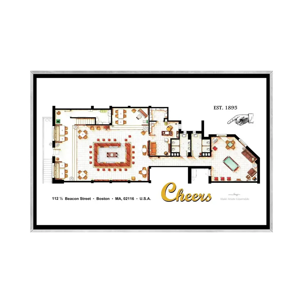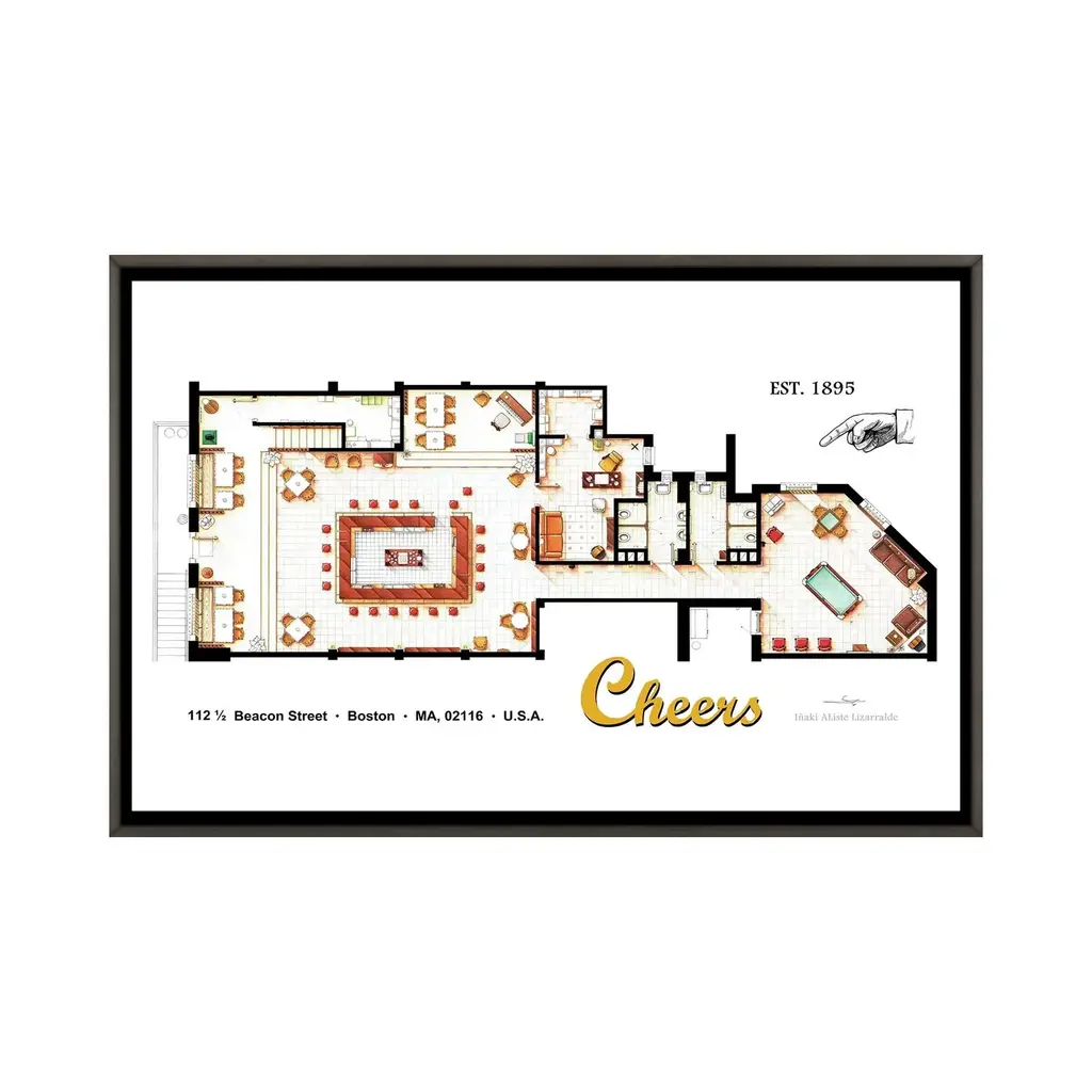 Icanvas "The Bar From Cheers" By Tv Floorplans & More Framed - Charcoal - 32x48