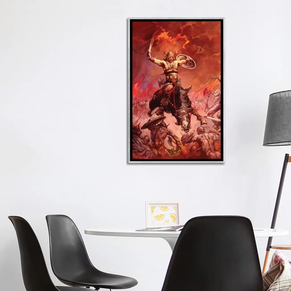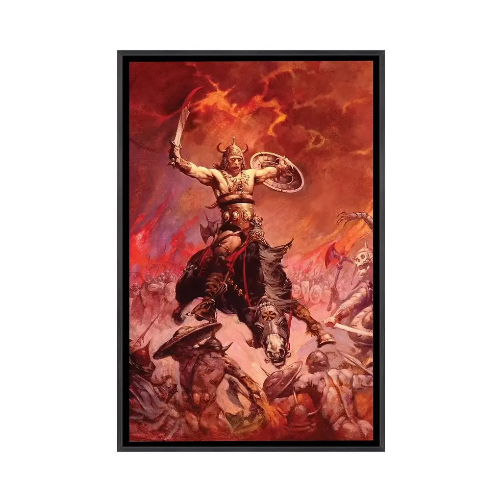Icanvas "The Berserker" By Frank Frazetta Framed - Ebony - 40x26