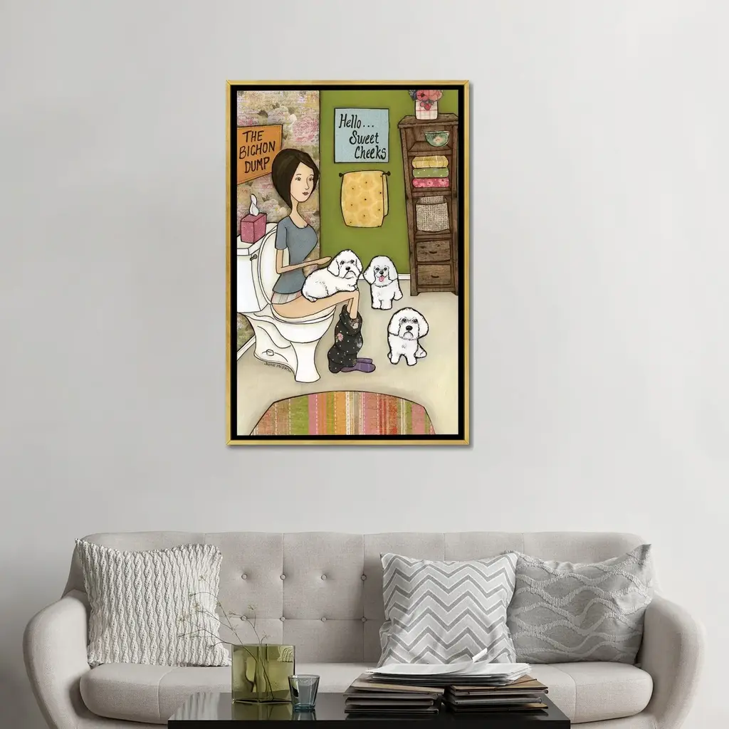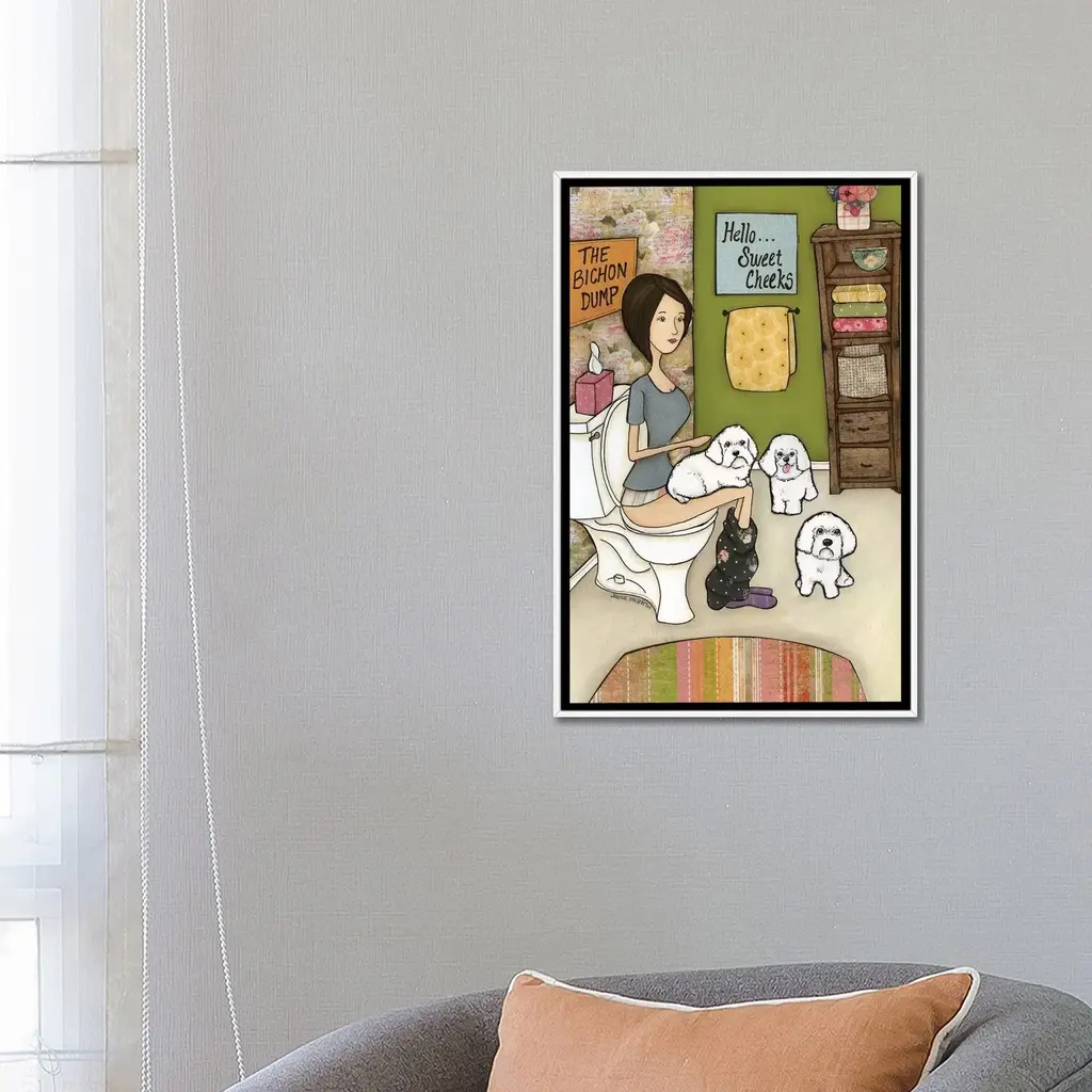 Icanvas "The Bichon Dump" By Jamie Morath Framed Canvas Print - White - 26x18