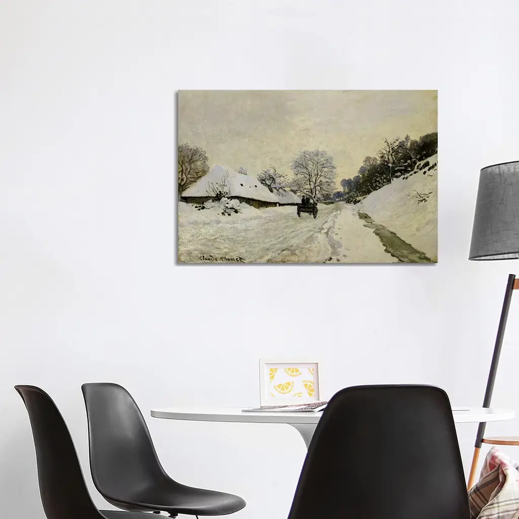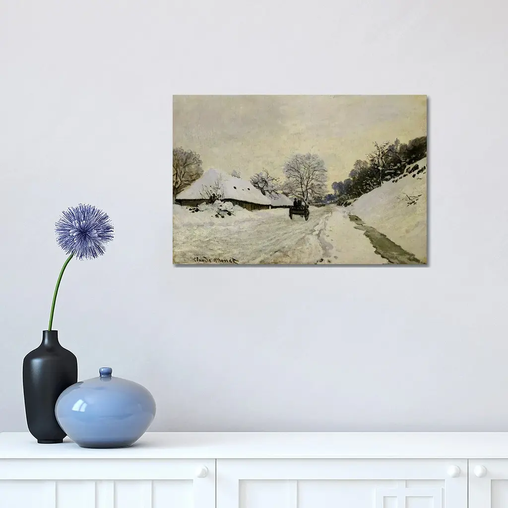 Icanvas "The Cart, Or Road Under Snow At Honfleur, 1865 " By Claude Monet Canvas Print - 8X12x0.75