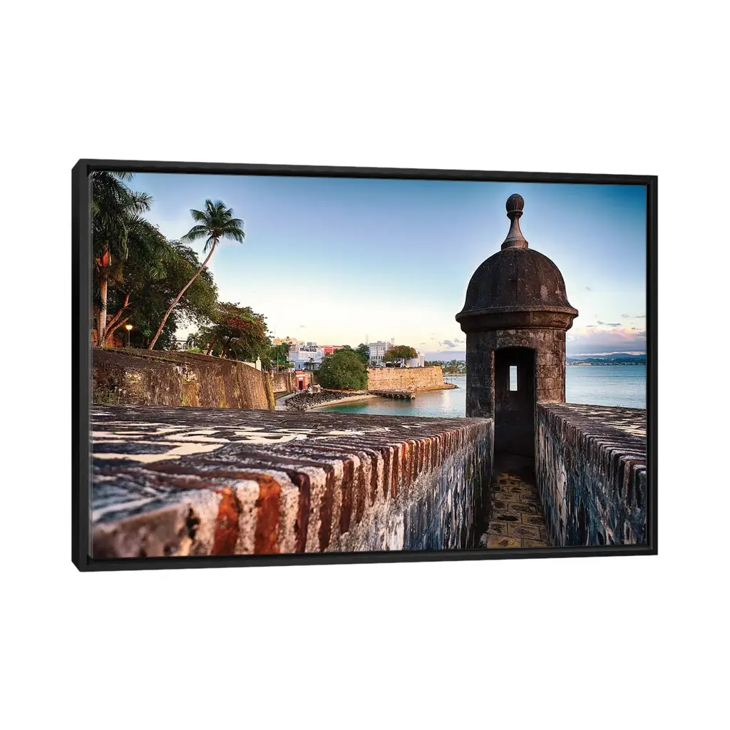 Icanvas "The City Walls And Gate Of Old San Juan With A Sentry Post, Puerto Rico" By George Oze Framed Canvas Print - Gold - 26x40