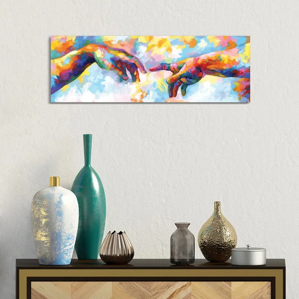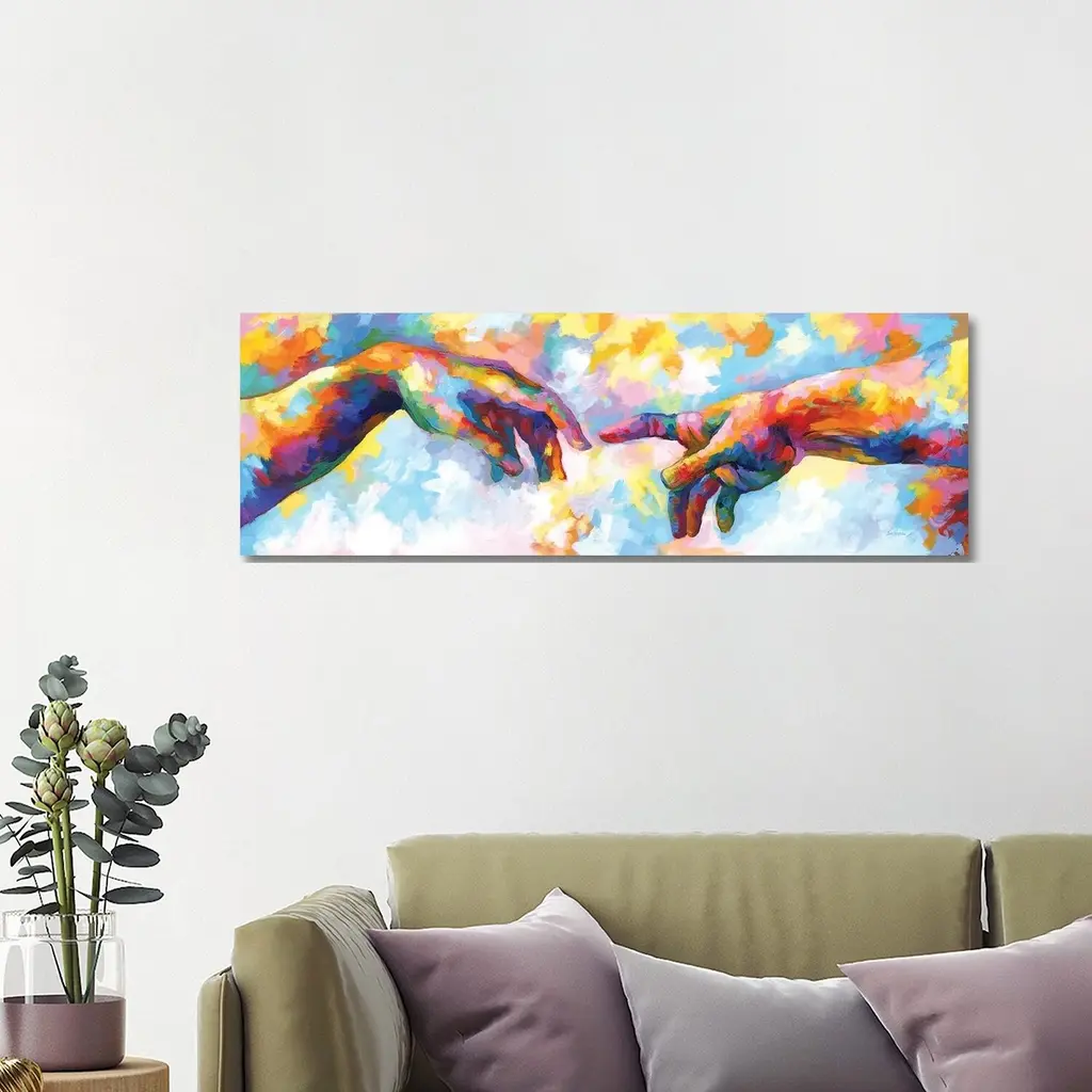 Icanvas "The Creation Of Adam,a Homage To Michelangelo" By Leon Devenice Canvas Print - 12x36x1.5
