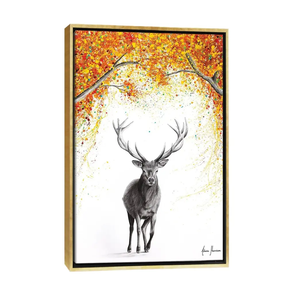 Icanvas "The Deer Dreamer" By Ashvin Harrison Framed - Gold - 40x26