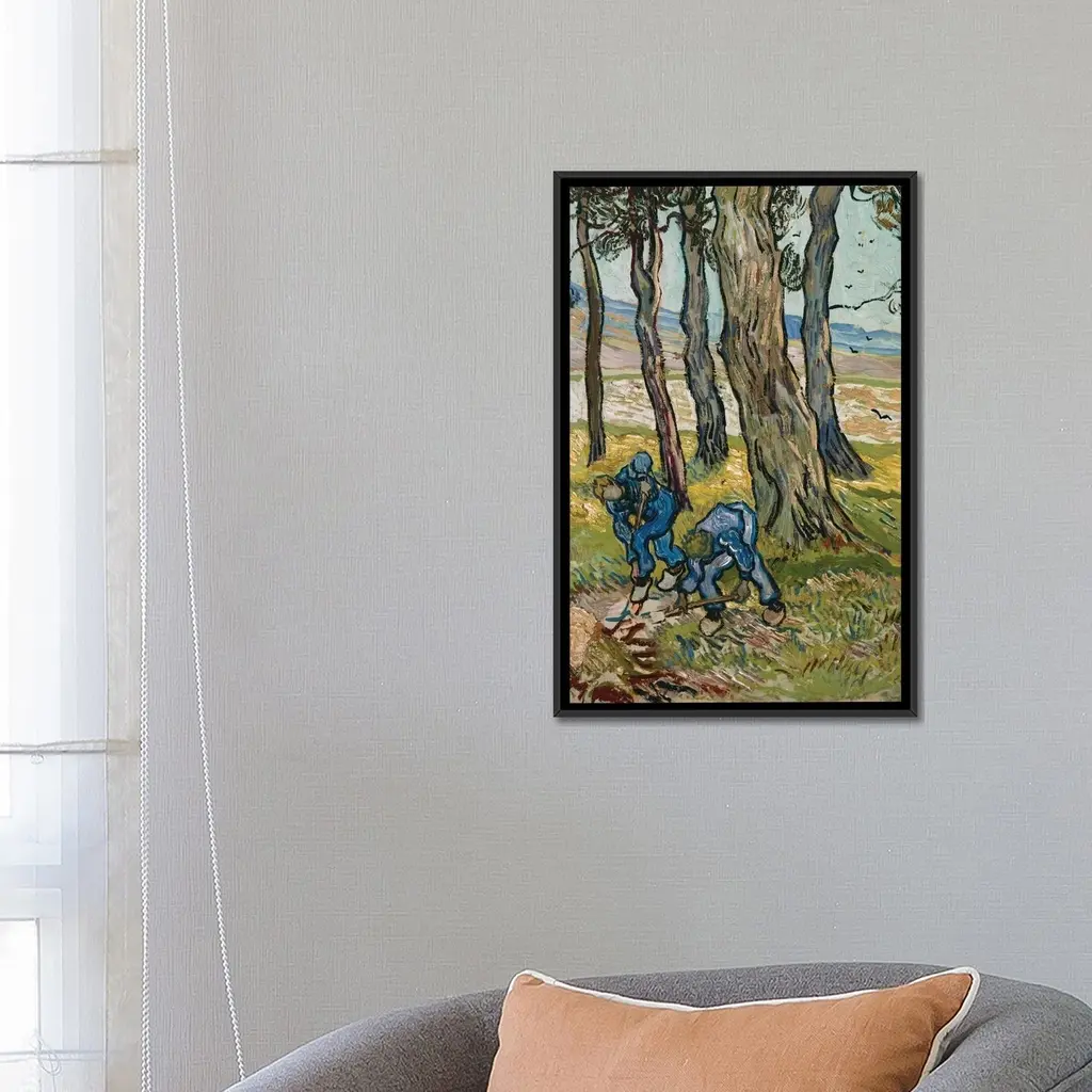 Icanvas "The Diggers, 1889" By Vincent Van Gogh Framed Canvas Print - Black - 40x26