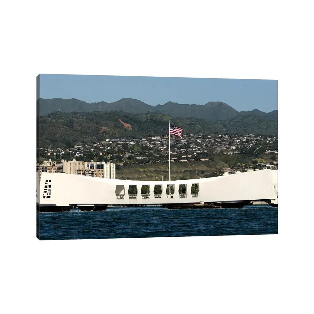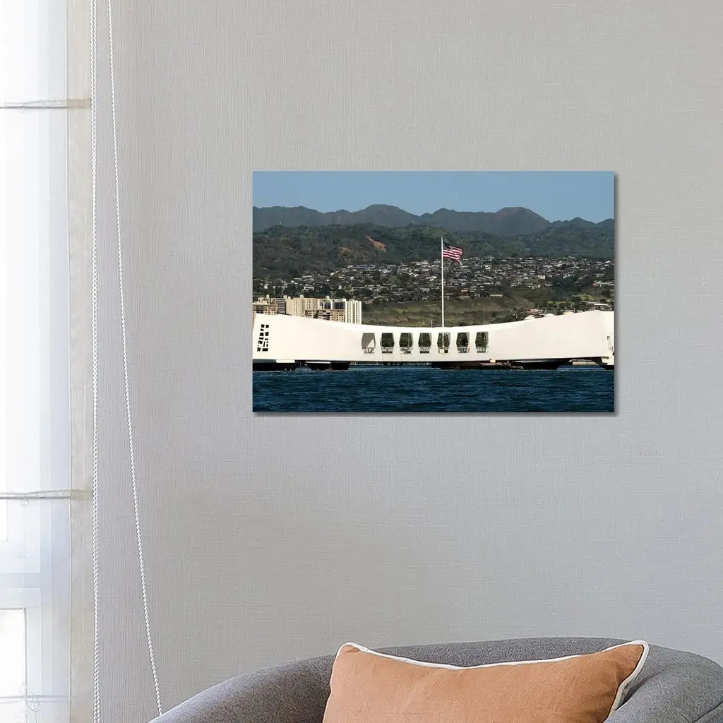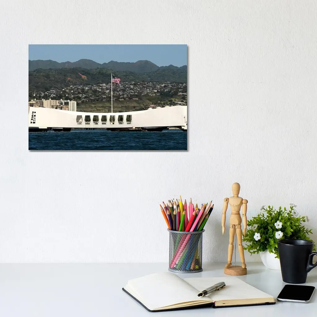 Icanvas "The Ensign Flies Over The Arizona Memorial" By Stocktrek Images Canvas Print - 18x26x1.5