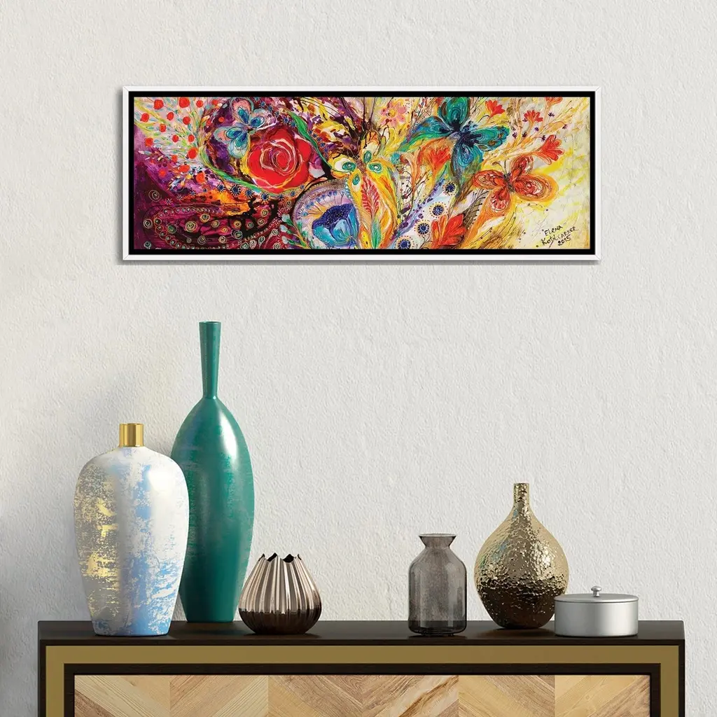 Icanvas "The Flowers And Butterflies" By Elena Kotliarker Framed Canvas Print - 12x36 - White