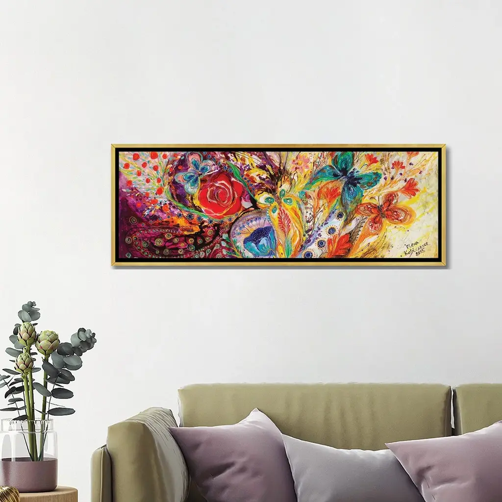 Icanvas "The Flowers And Butterflies" By Elena Kotliarker Framed Canvas Print - 16x48 - Gold
