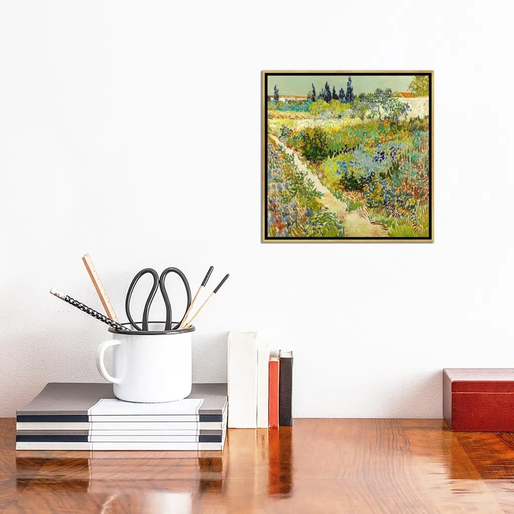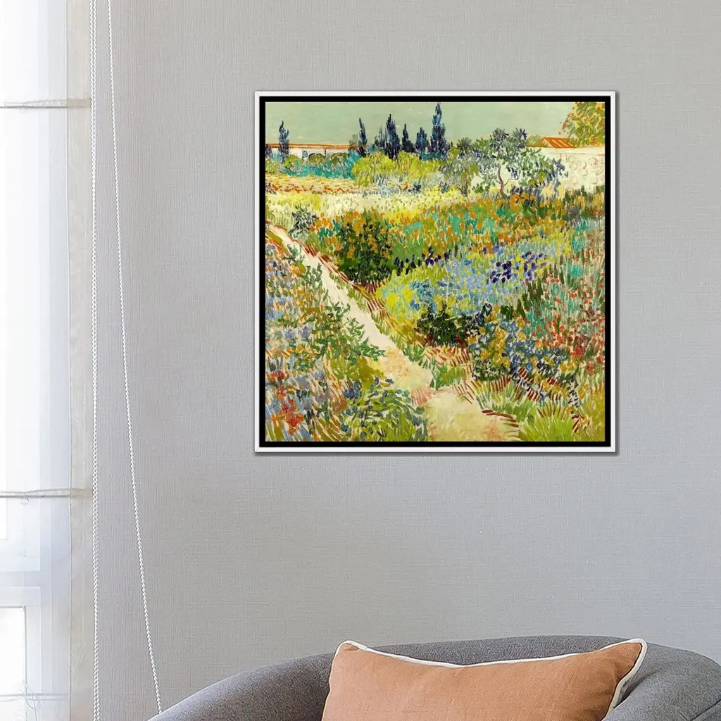 Icanvas "The Garden At Arles" By Vincent Van Gogh Framed Canvas Print - Black - 12x12