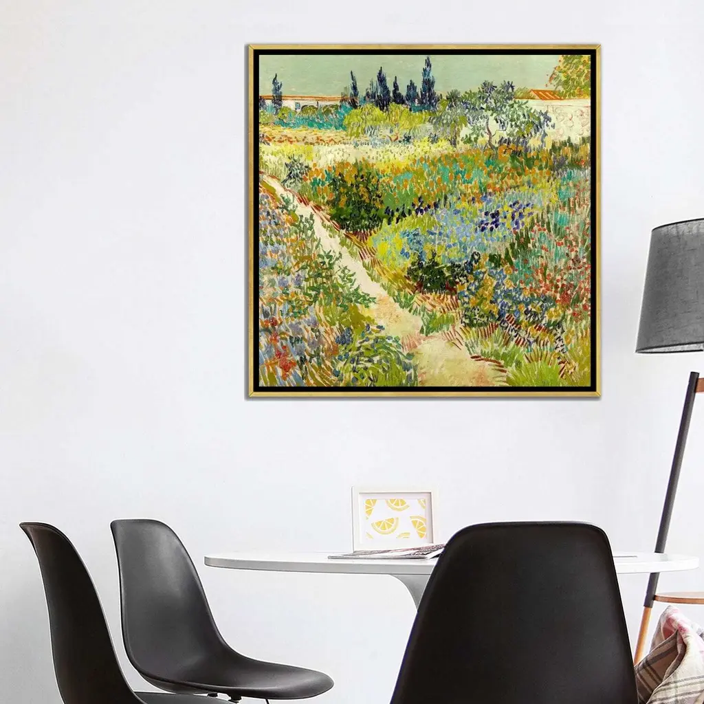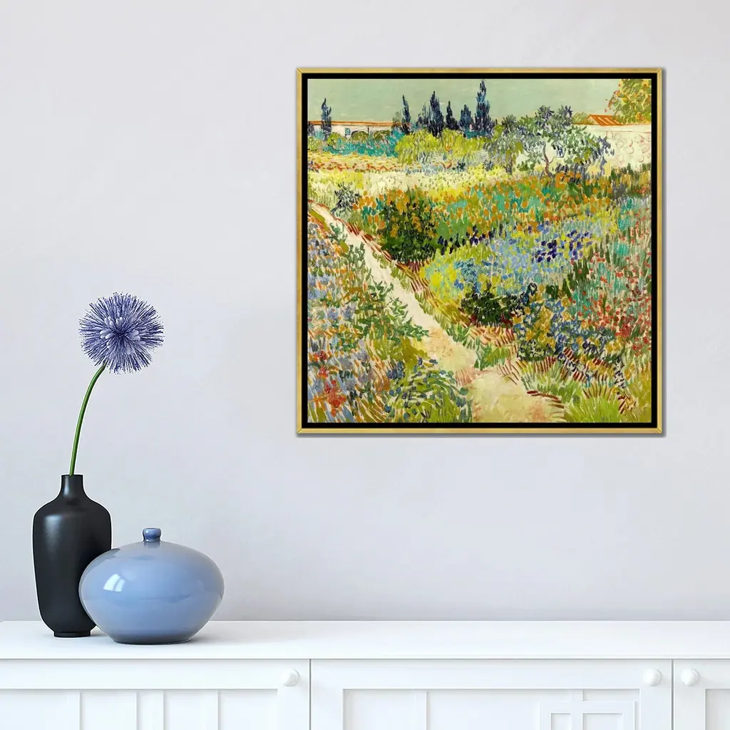 Icanvas "The Garden At Arles" By Vincent Van Gogh Framed Canvas Print - Black - 26x26