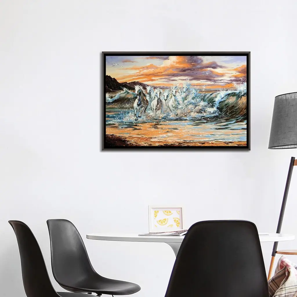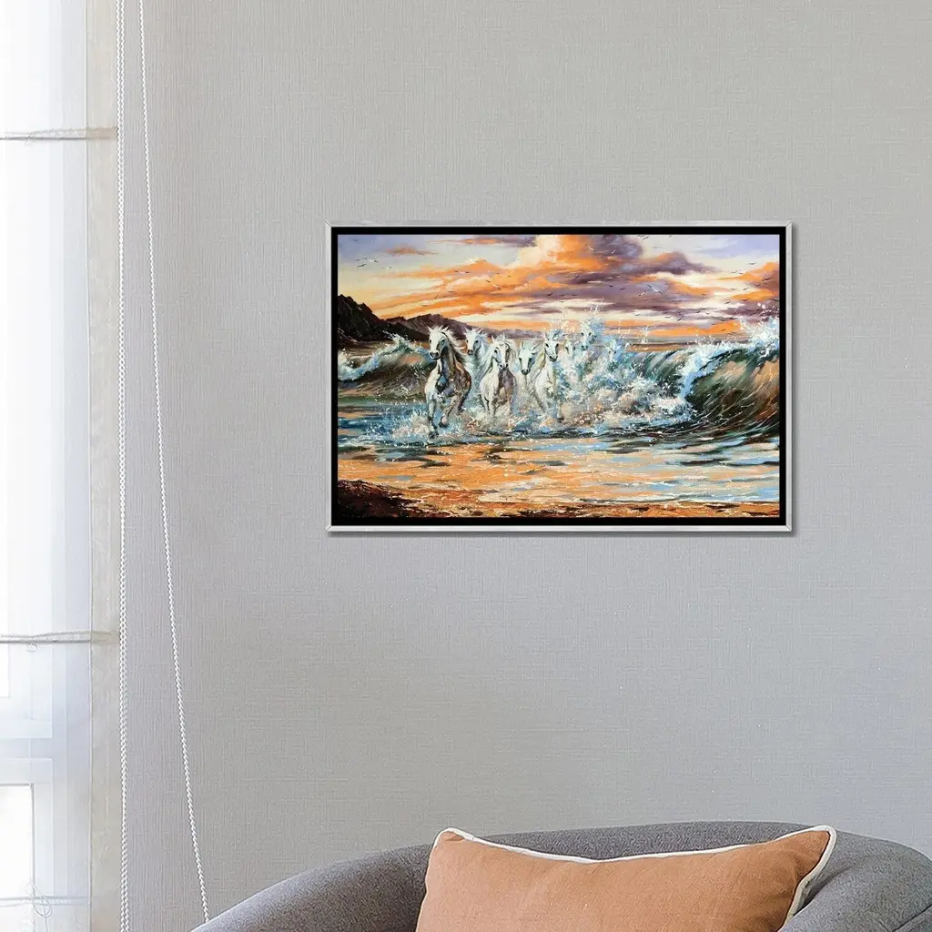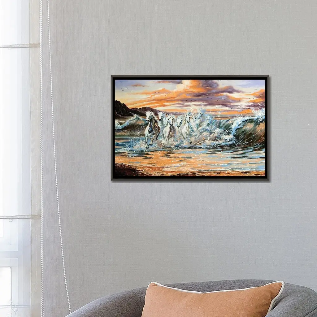 Icanvas "The Horses Running From Waves" By Balaikin Framed - Charcoal - 18x26