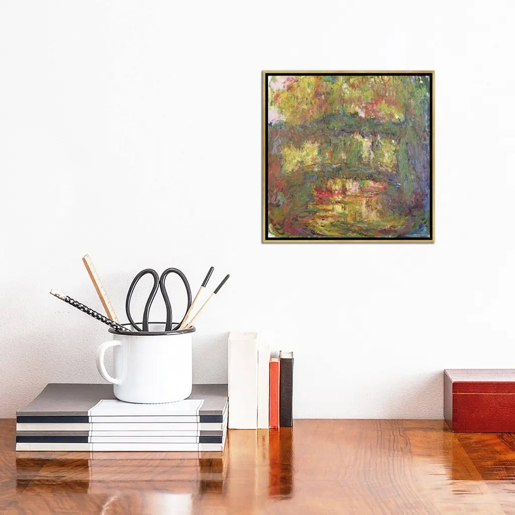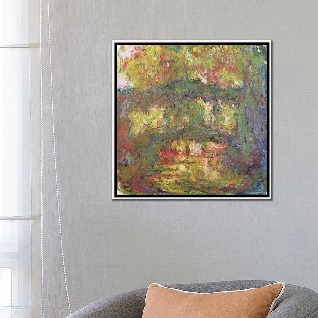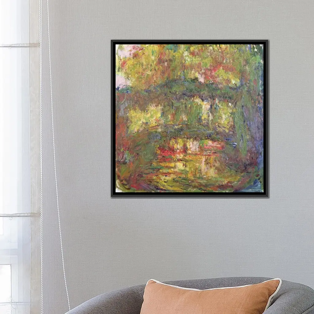 Icanvas "The Japanese Bridge At Giverny, 1918-24 " By Claude Monet Framed Canvas Print - Black - 12x12