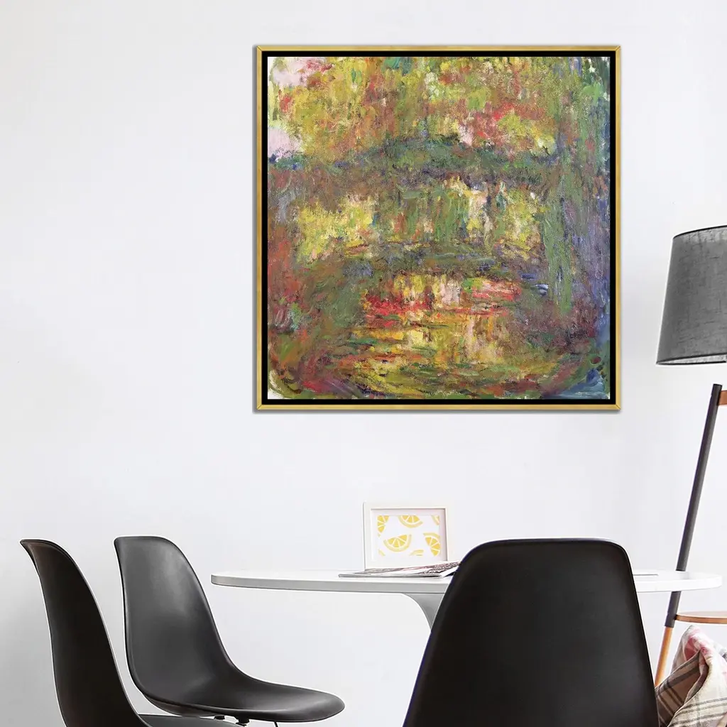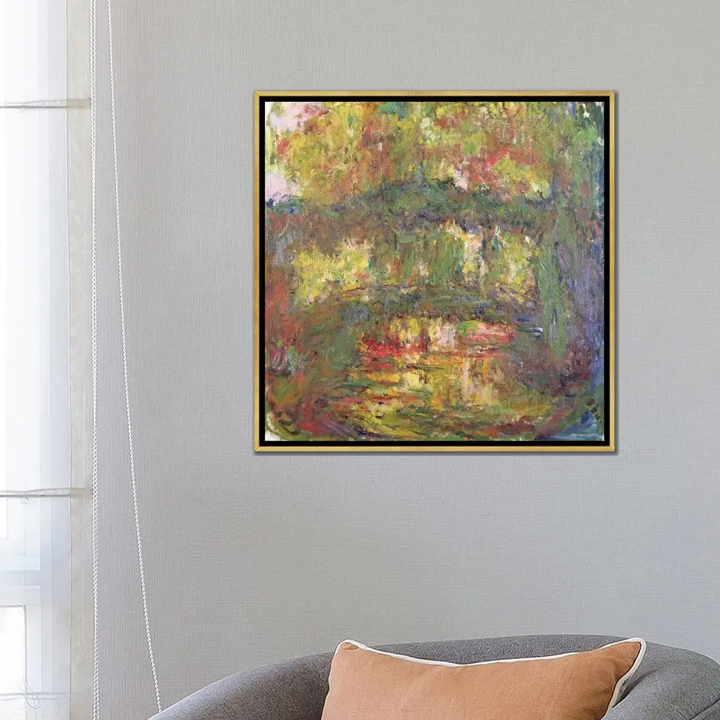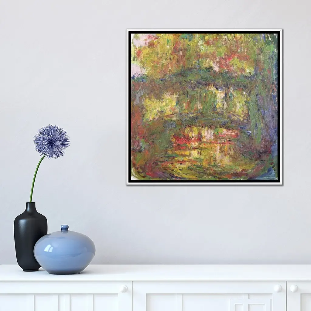Icanvas "The Japanese Bridge At Giverny, 1918-24 " By Claude Monet Framed Canvas Print - Black - 12x12