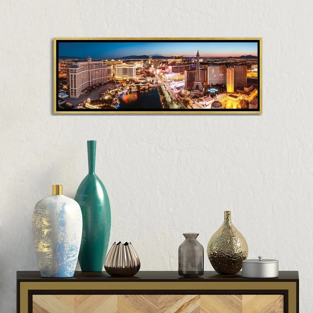 Icanvas "The Las Vegas Strip At Sunrise, Las Vegas, Nevada, Usa" By Matteo Colombo Framed Canvas Print - 12x36 - Gold