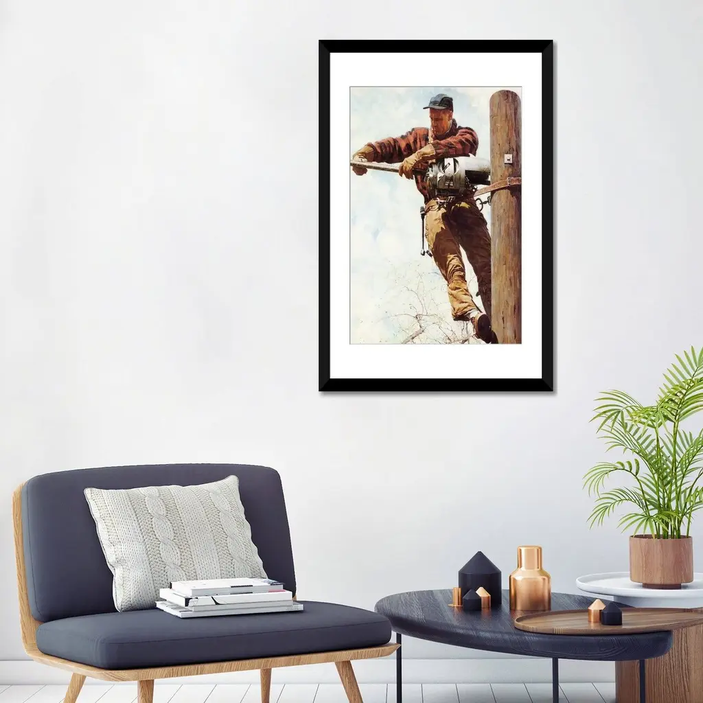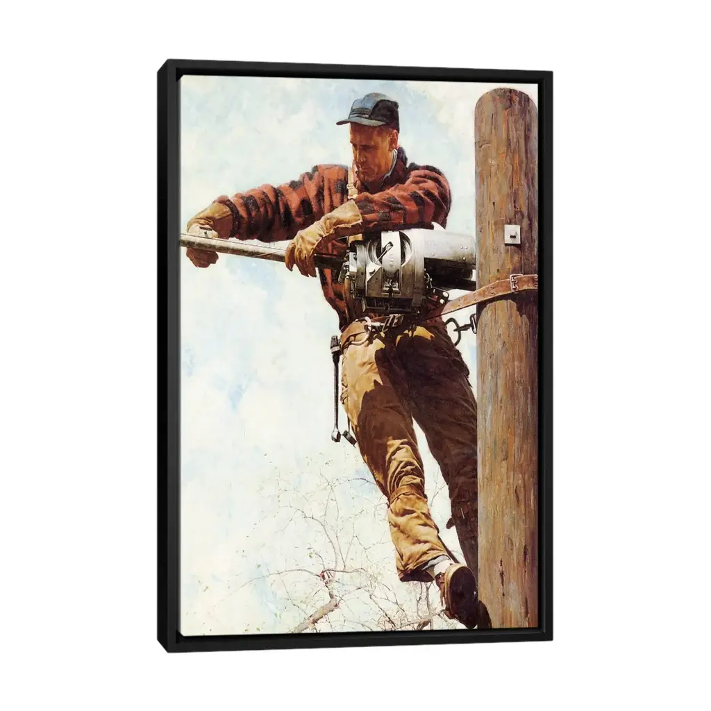 Icanvas "The Lineman" By Norman Rockwell Framed Canvas Print - Gold - 40x26