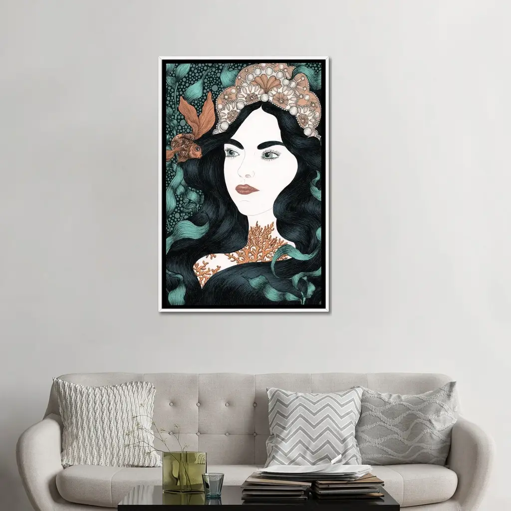 Icanvas "The Little Fish Colour Version" By Ella Mazur Framed Canvas Print - White - 26x18