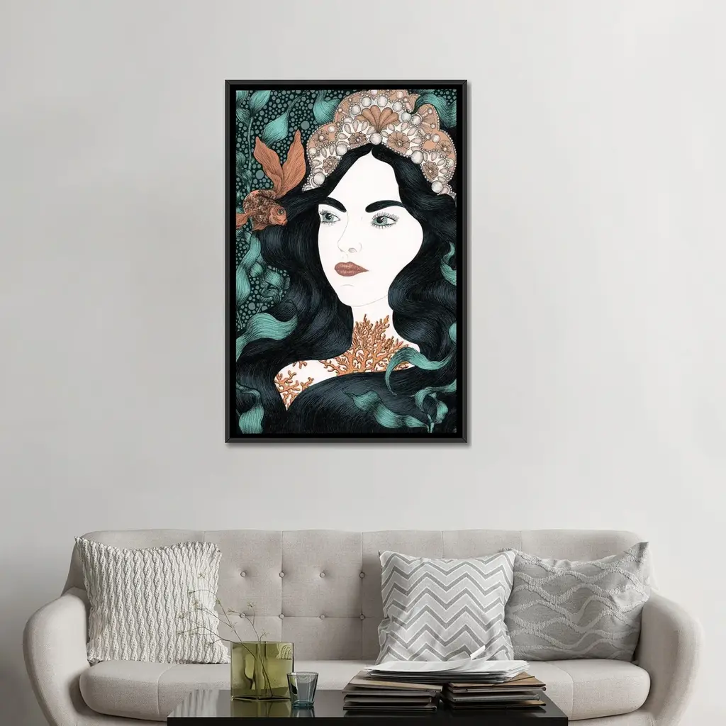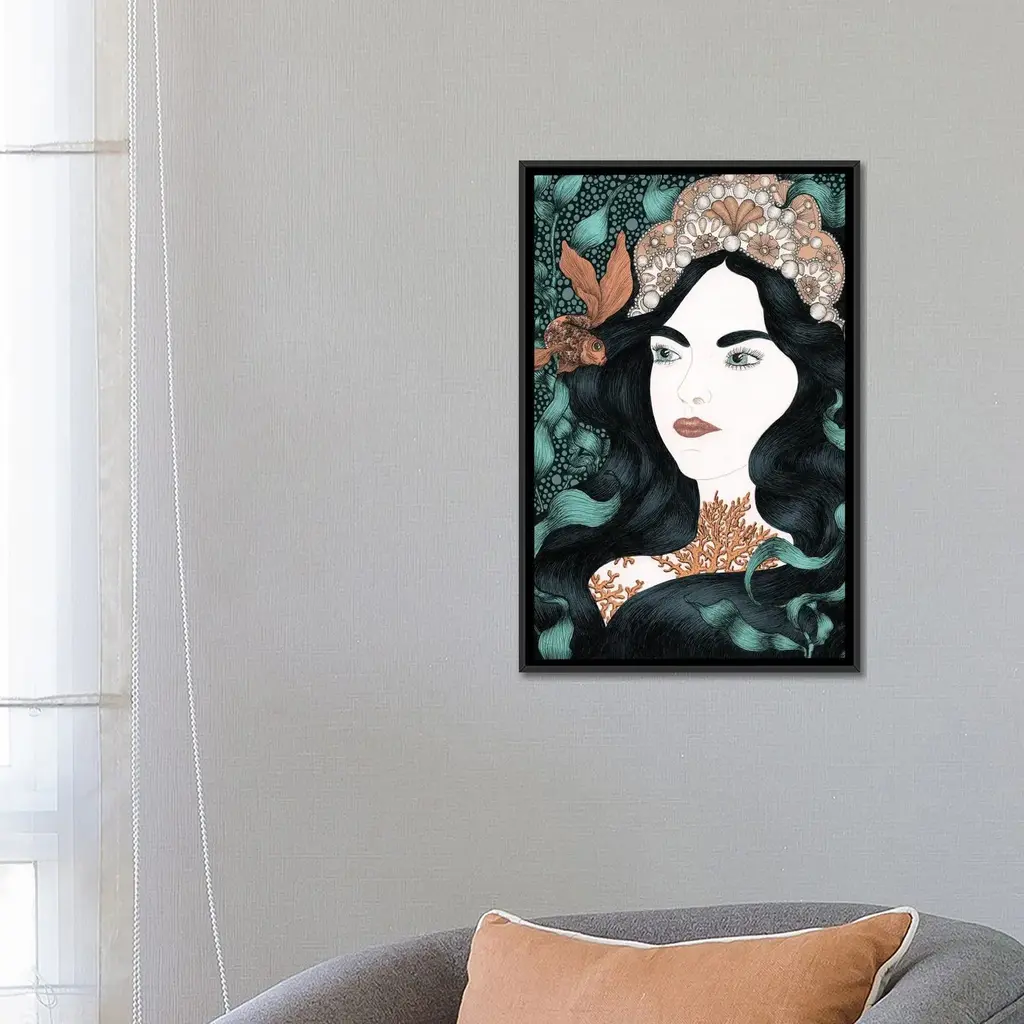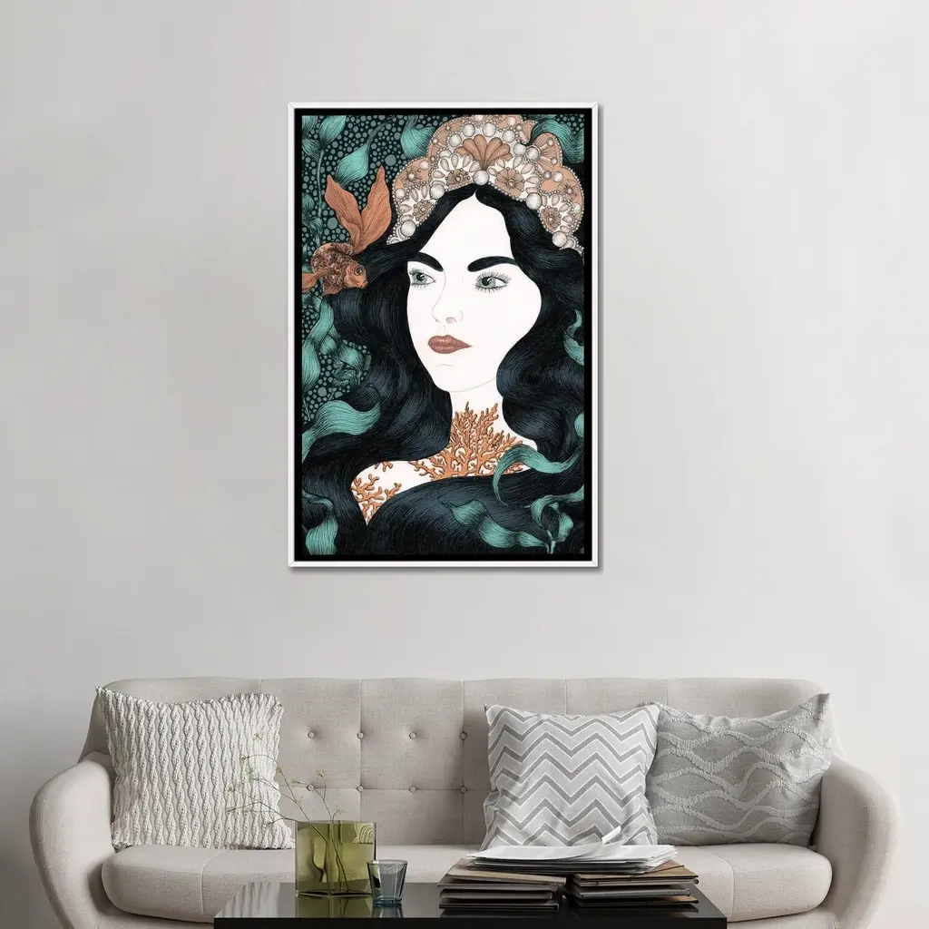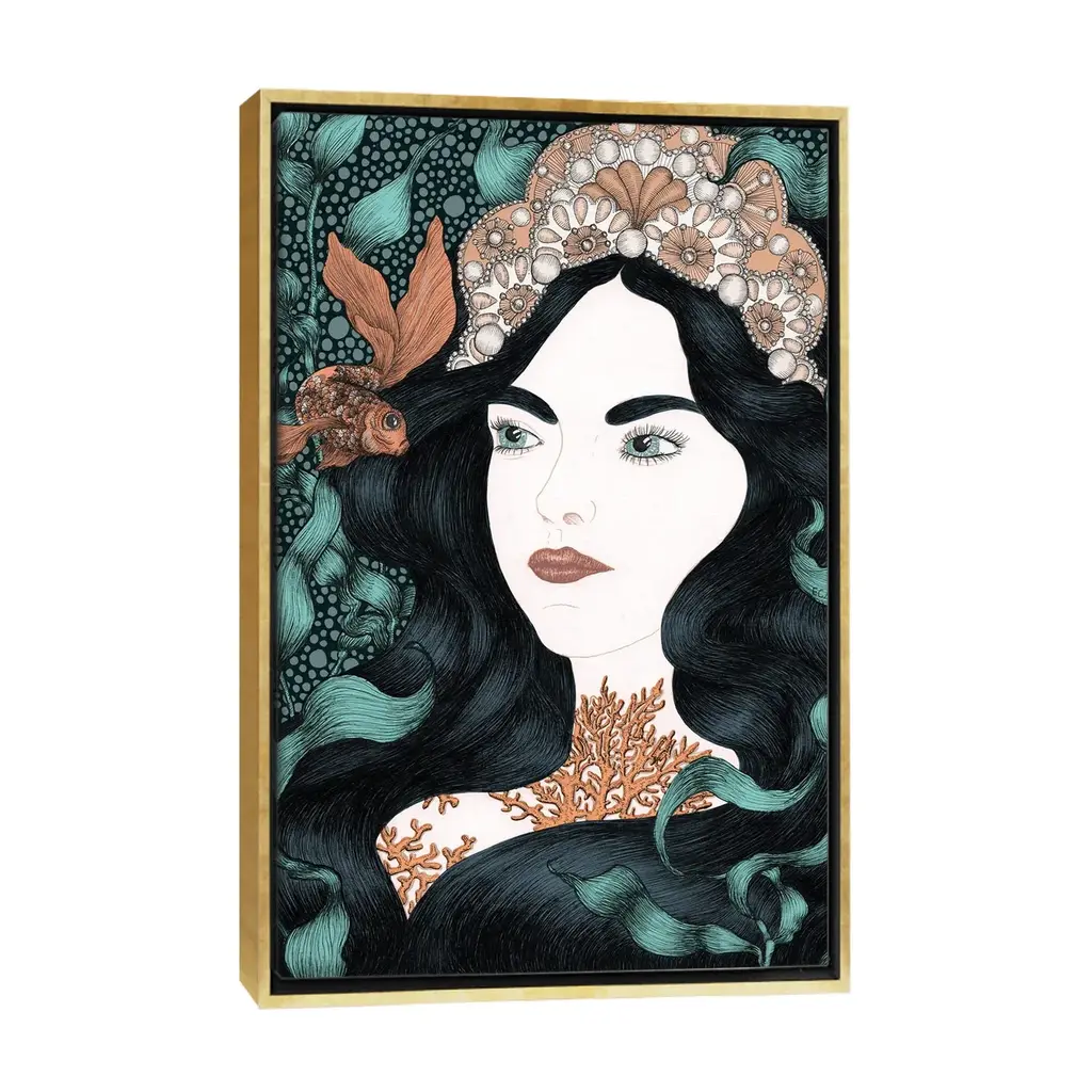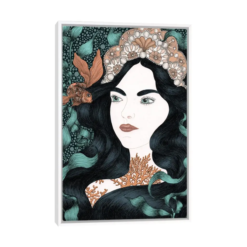 Icanvas "The Little Fish Colour Version" By Ella Mazur Framed Canvas Print - White - 48x32