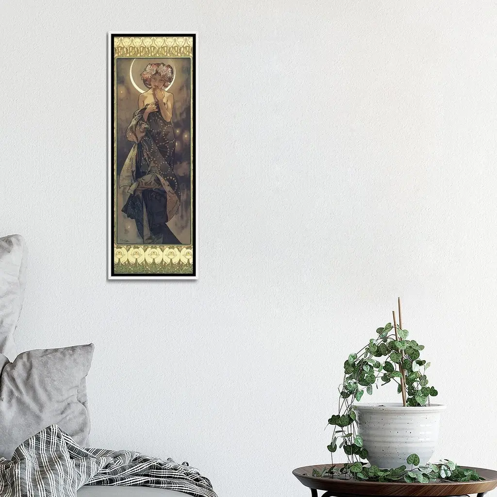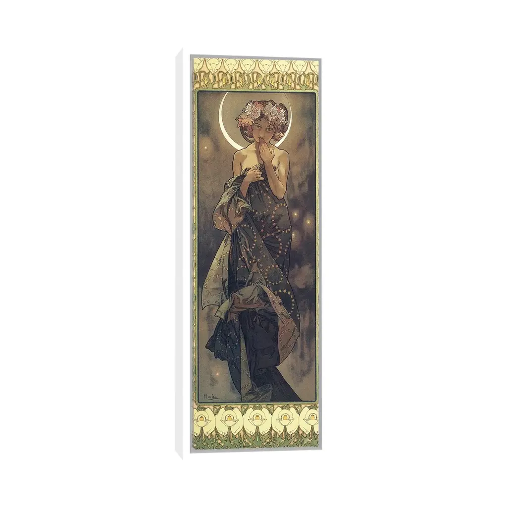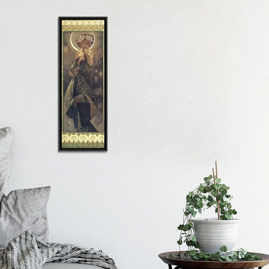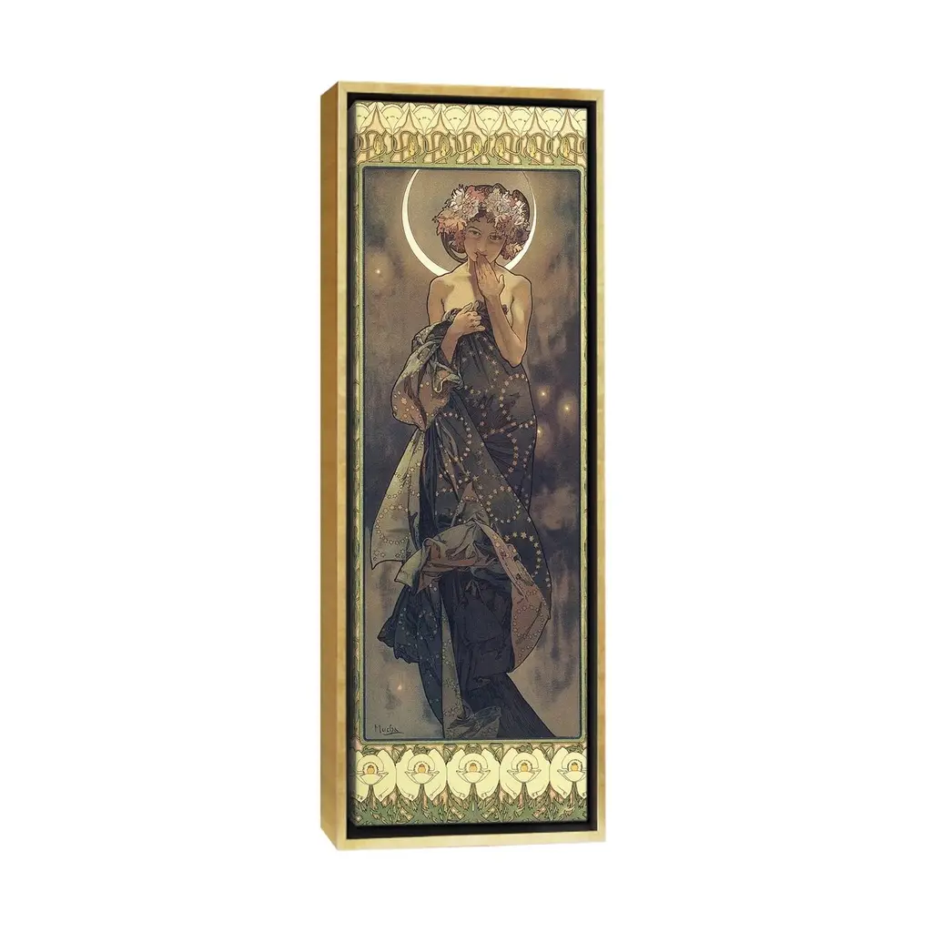 Icanvas "The Moon And The Stars- The Moon, 1902 " By Alphonse Mucha Framed Canvas Print - Black - 36x12