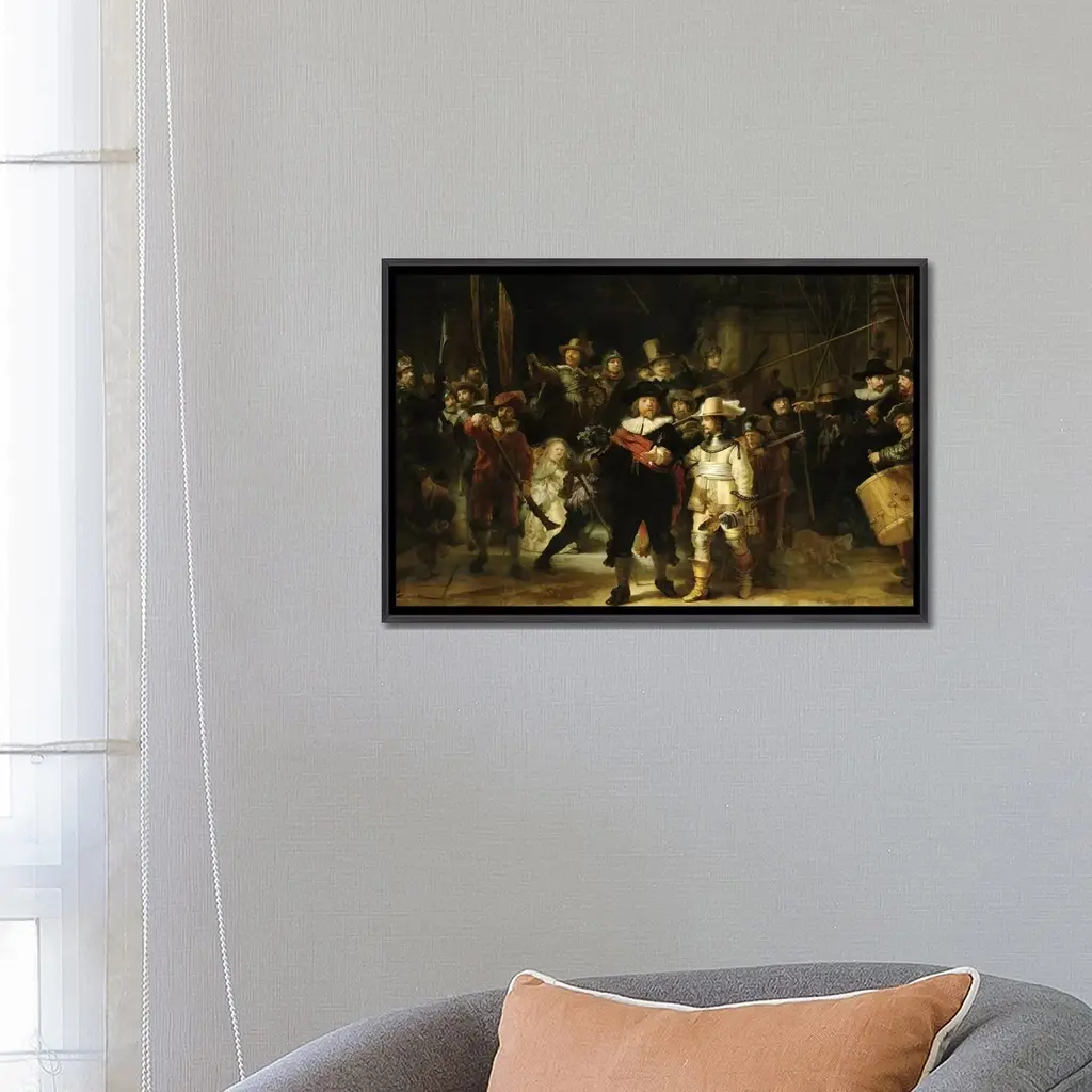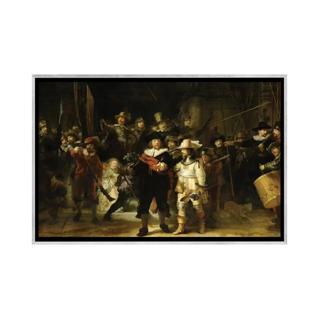 Icanvas "The Night Watch, 1642" By Rembrandt Van Rijn Framed - Charcoal - 18x26