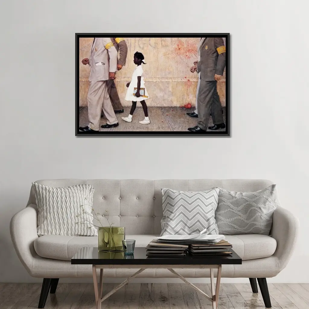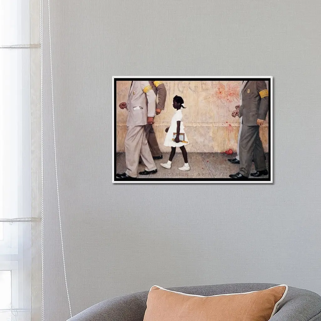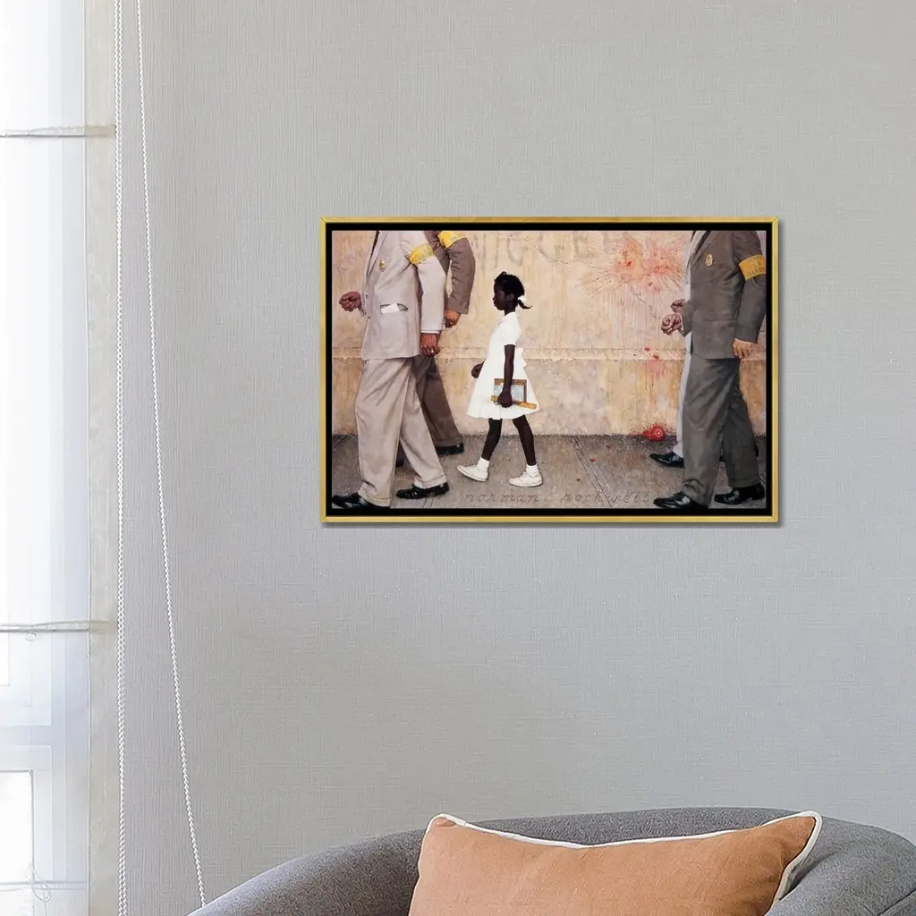 Icanvas "The Problem We All Live With (Ruby Bridges)" By Norman Rockwell Framed Canvas Print - Gold - 32x48