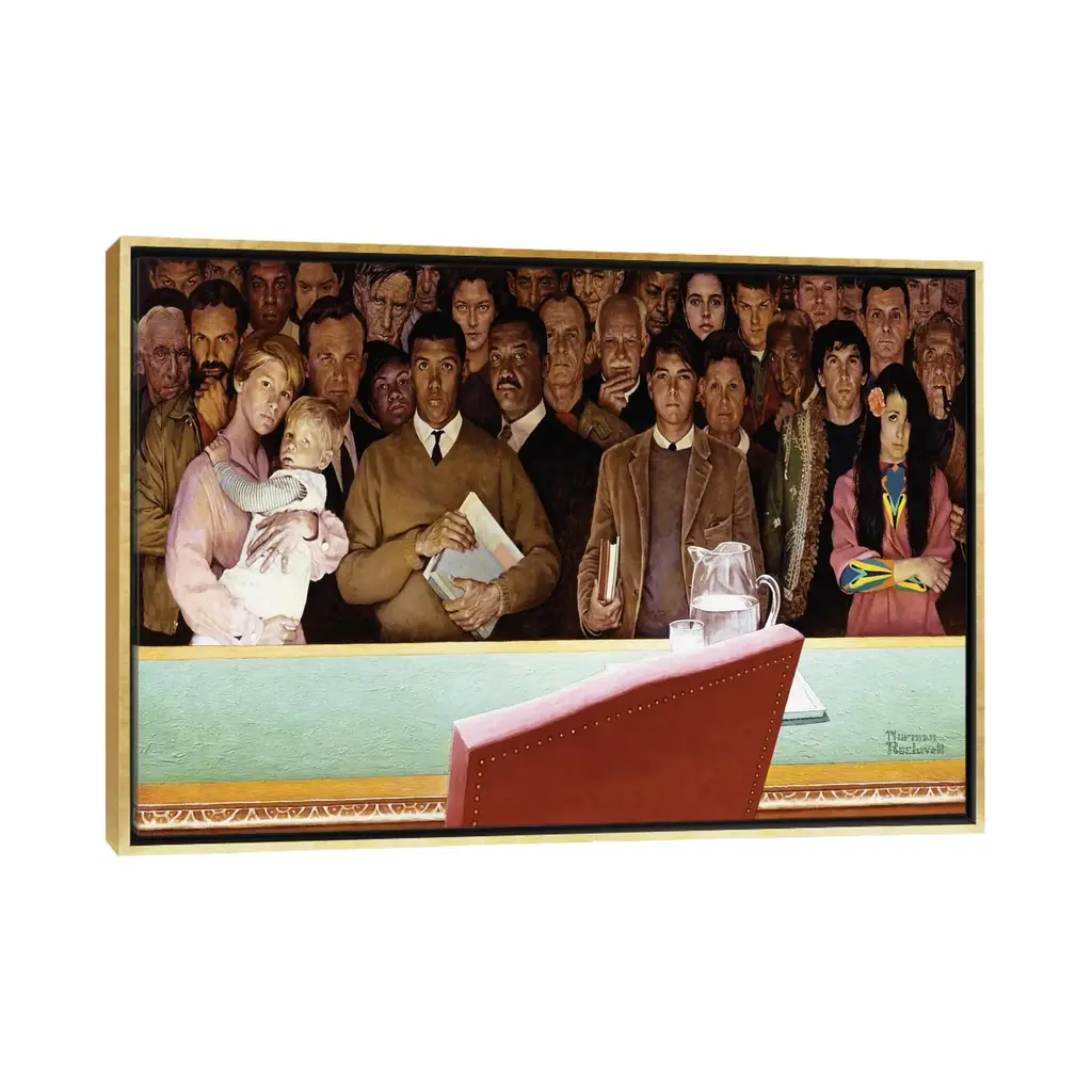 Icanvas "The Right To Know" By Norman Rockwell Framed Canvas Print - Black - 26x40