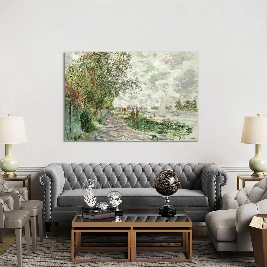 Icanvas "The Riverbank At Gennevilliers, C.1875 " By Claude Monet Canvas Print - 12x18x1.5