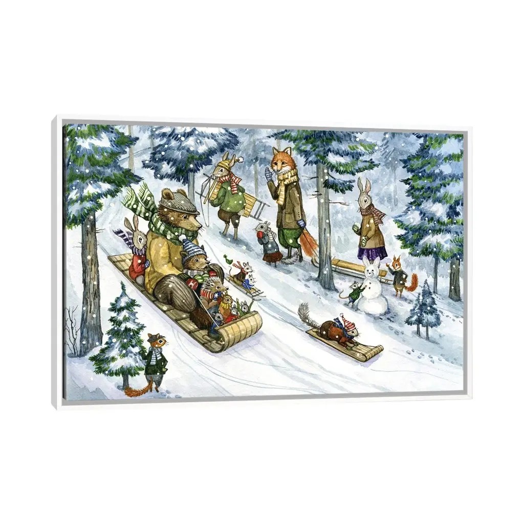 Icanvas "The Sledding Hill" By Astrid Sheckels Framed Canvas Print - Gold - 18x26