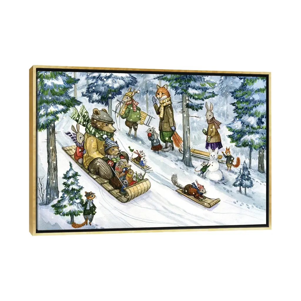 Icanvas "The Sledding Hill" By Astrid Sheckels Framed Canvas Print - White - 18x26