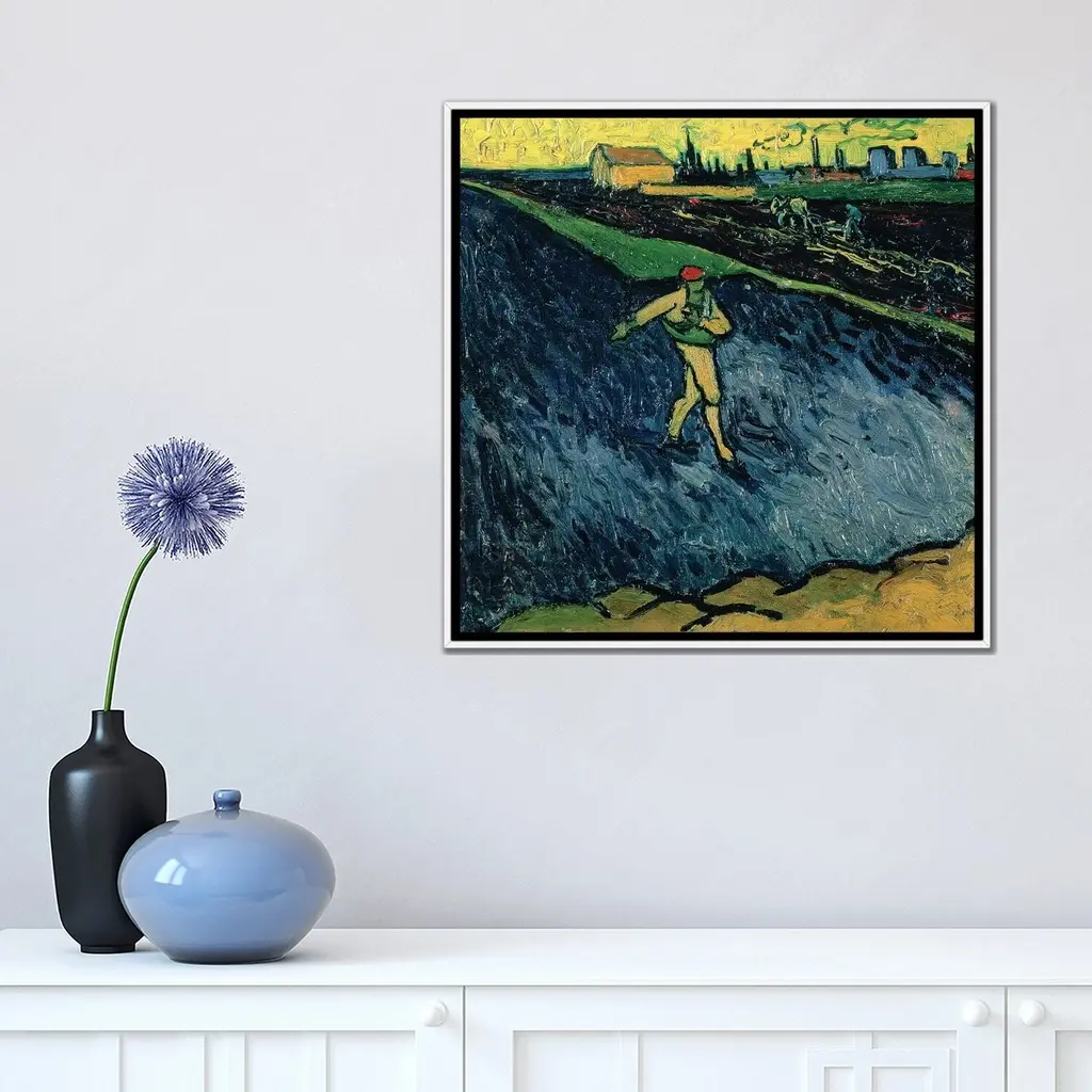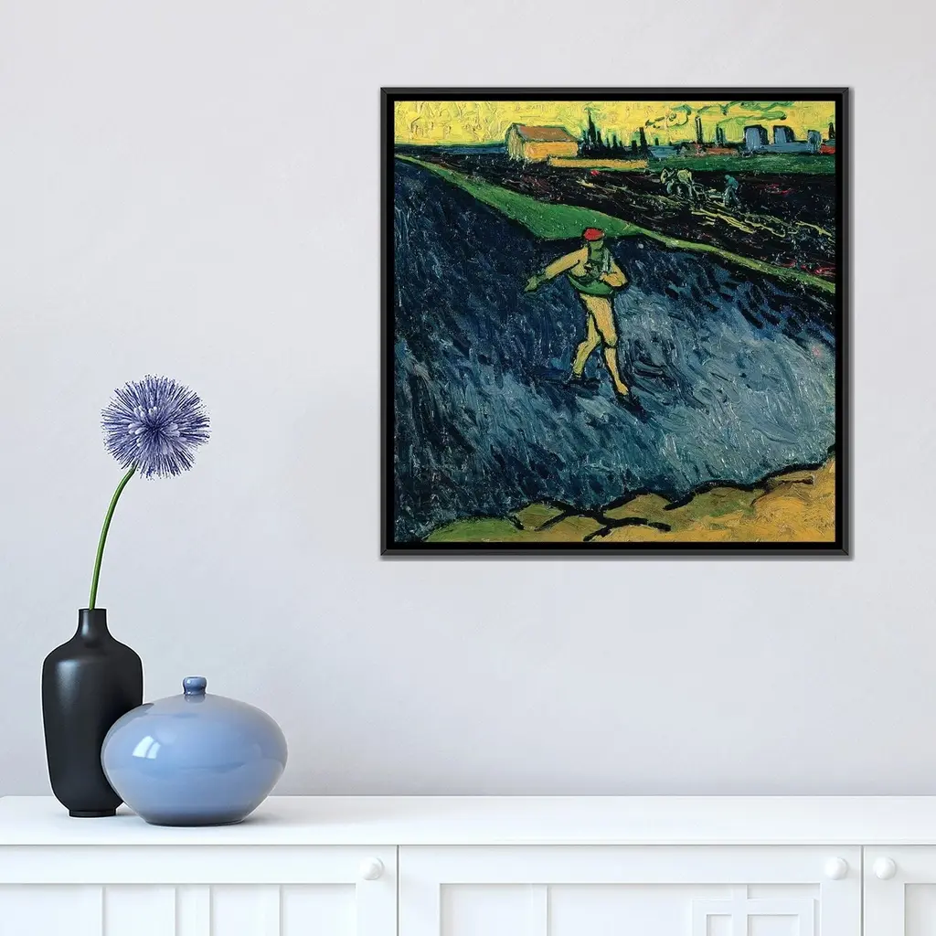 Icanvas "The Sower, 1888 " By Vincent Van Gogh Framed Canvas Print - Black - 12x12