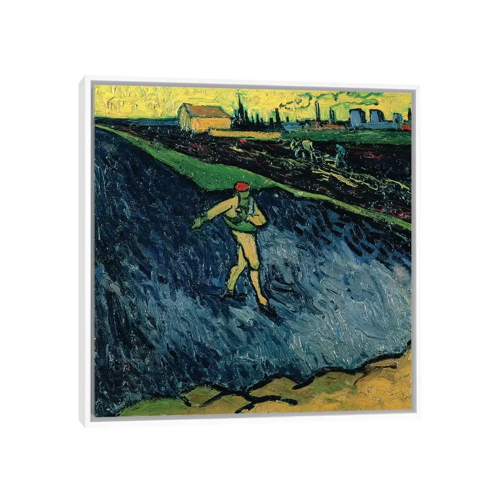 Icanvas "The Sower, 1888 " By Vincent Van Gogh Framed Canvas Print - Gold - 12x12