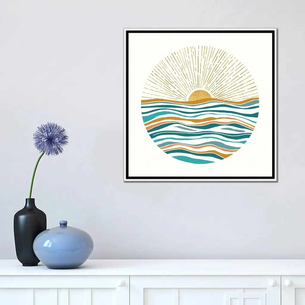 Icanvas "The Sun And The Sea Ii" By Modern Tropical Framed Canvas Print - Gold - 18x18